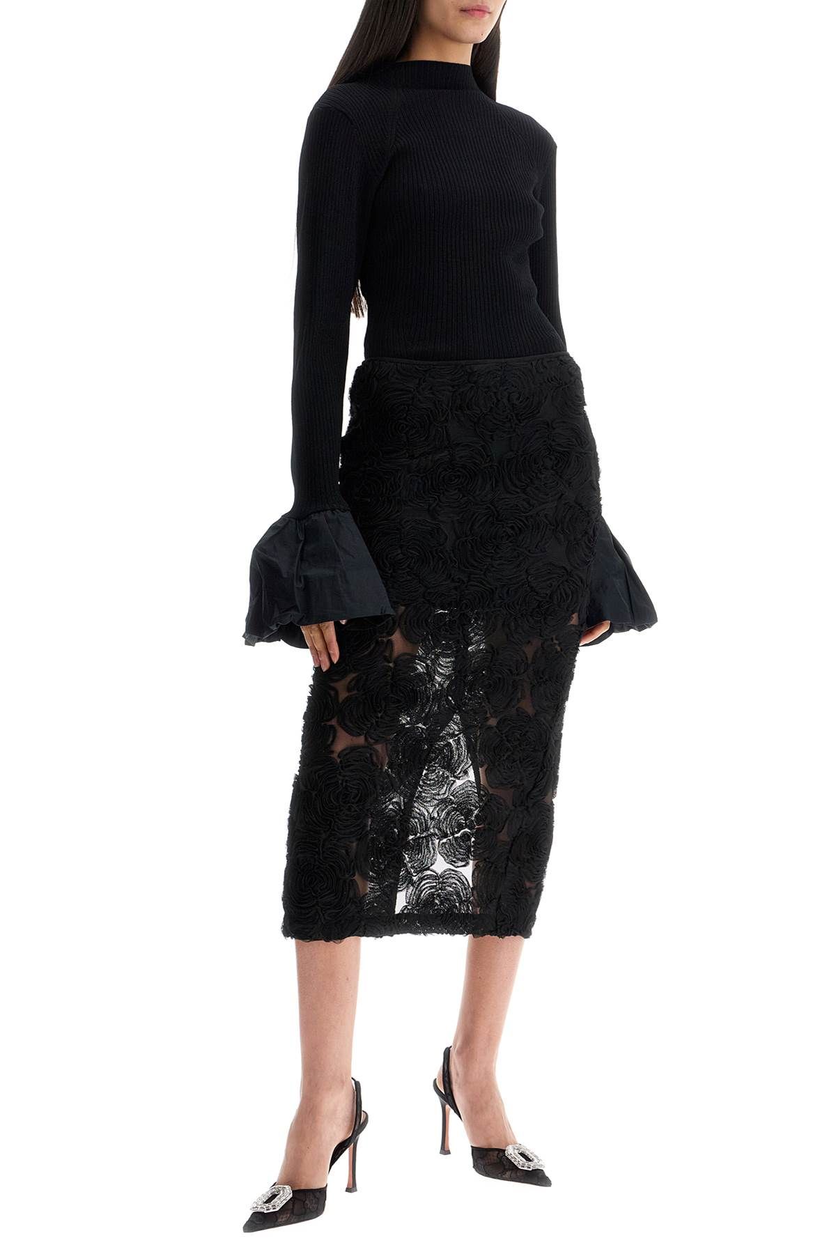 The 'Flower Mesh' pencil skirt by ROTATE combines elegance and sustainability