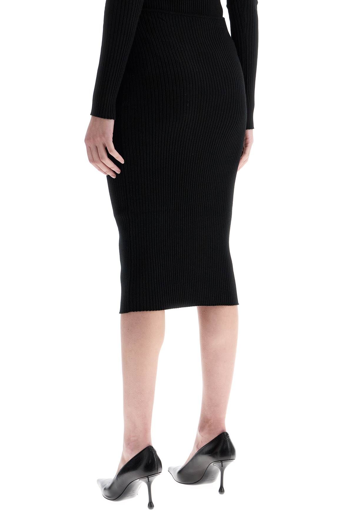 The COURREGES midi skirt offers timeless elegance. Slim fit high waist with vertical ribs in viscose and polyester. Versatile and refined for sophisticated looks day and night.