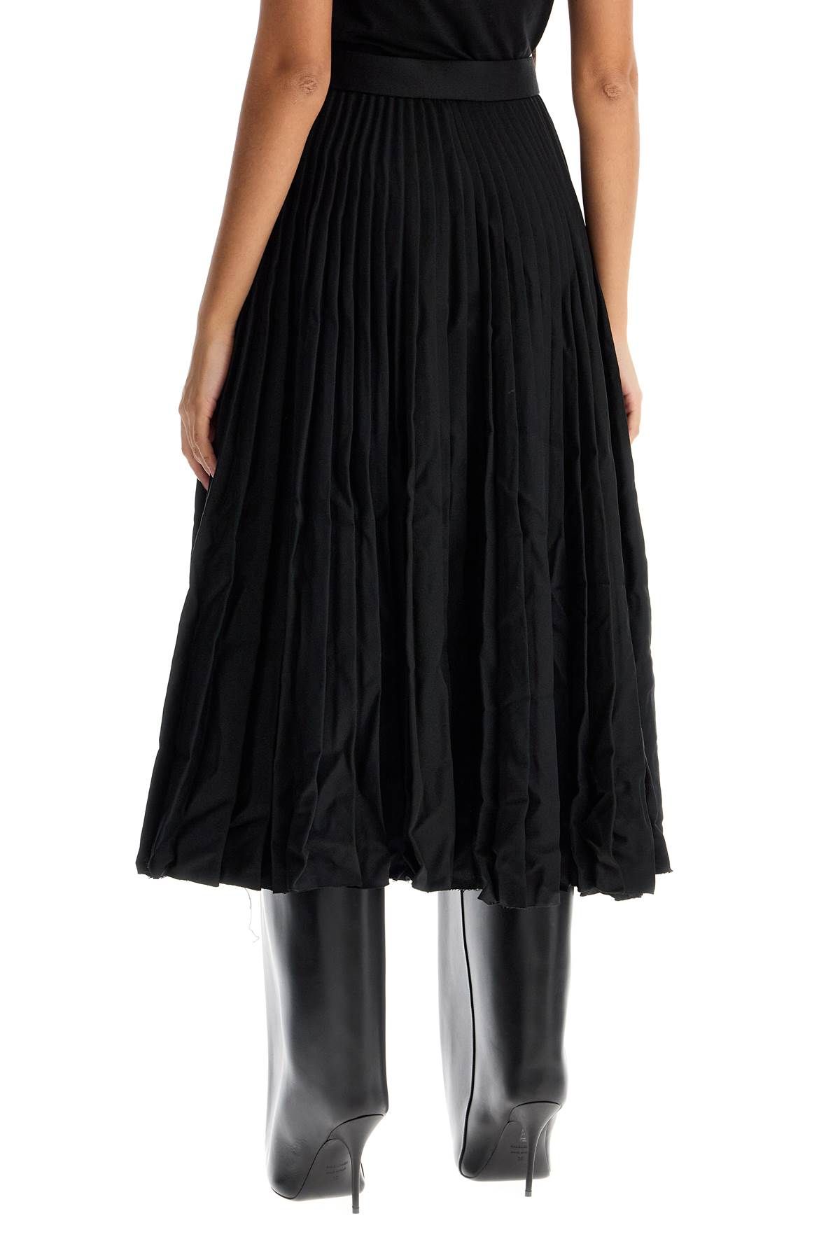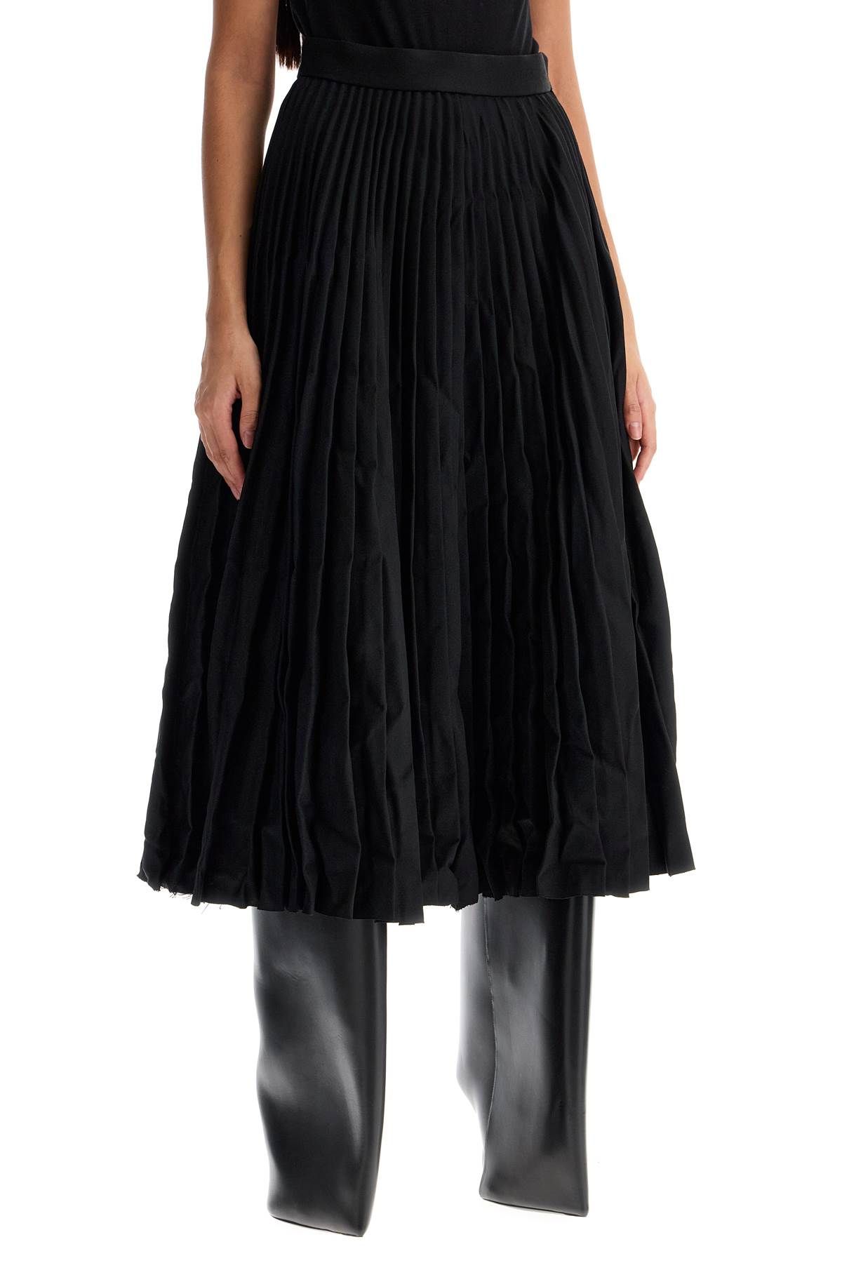 The Balenciaga midi skirt is made of pure wool twill with a crinkled effect and a raw cut hem