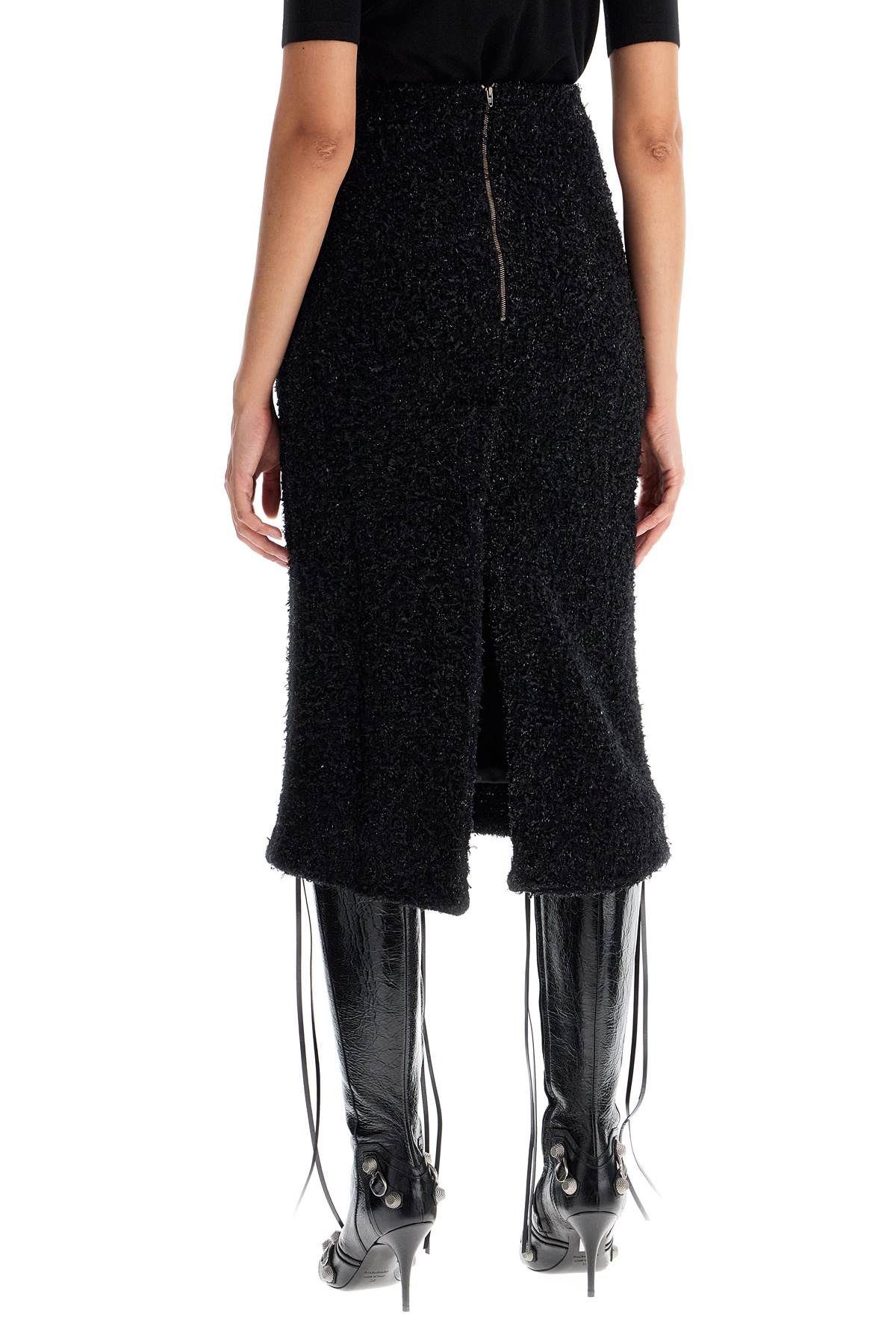 Balenciaga's Longuette skirt is made of a cotton blend tweed with lurex, featuring a feminine mermaid silhouette enhanced by a high waist