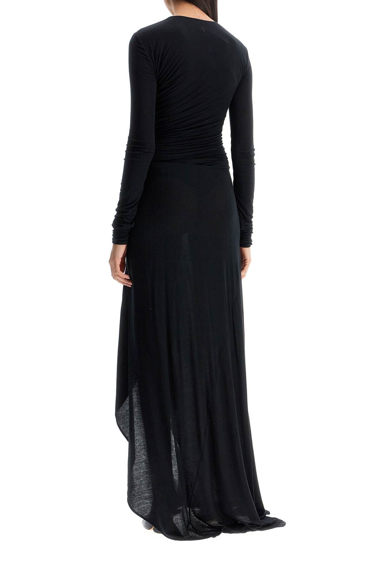 Crafted in lightweight modal and cashmere jersey, this maxi dress from The Attico features a draped bodice with a round neck and long sleeves, highlighted by cut-out details on the sides. The skirt has an asymmetrical construction with side draping. The model is 177 cm tall and wears size IT 40.