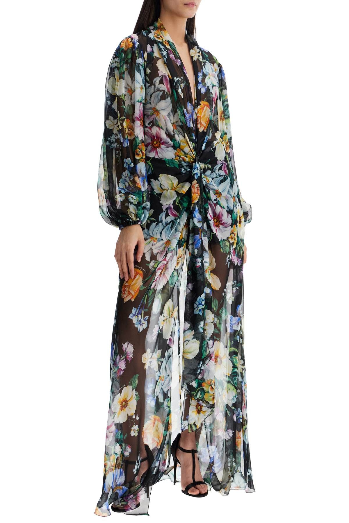 Long Silk Dress by Dolce & Gabbana embodies Italian elegance. Made from 100% silk with a vibrant floral pattern, puff sleeves, and a central knot. A masterpiece of high fashion for special occasions