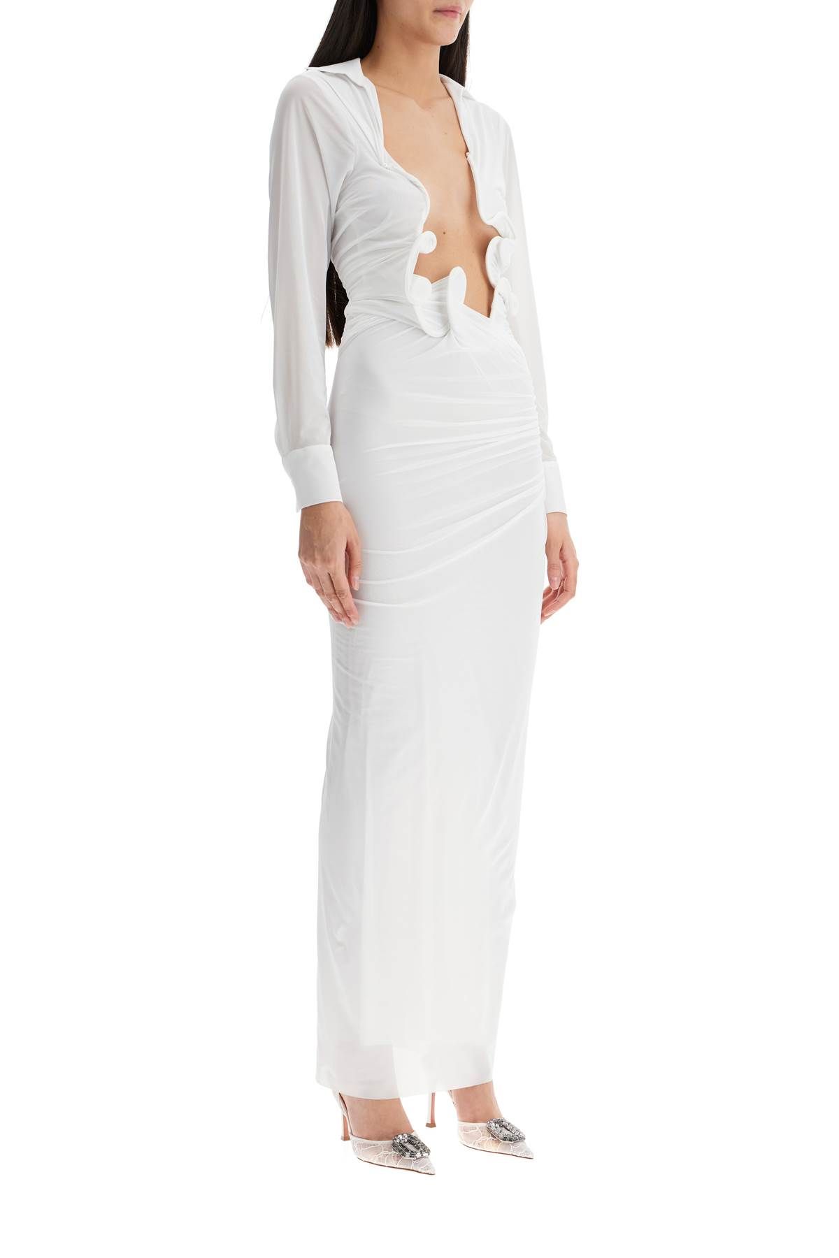 The Venus Plunge dress by Christopher Esber is made of lightweight technical jersey and features a sculptural structured neckline with rigid metal wire