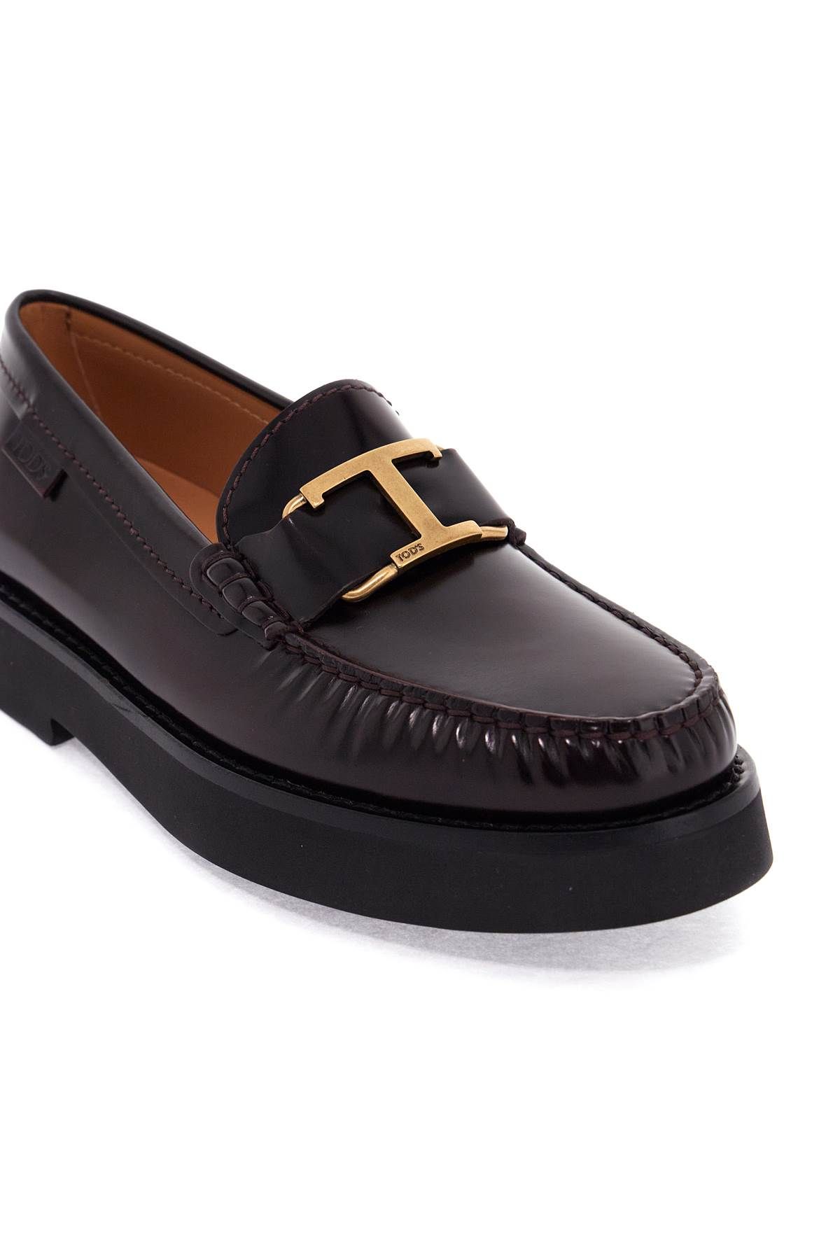 Tod's loafers in brushed leather with maxi metal T Timeless buckle applied to the penny bar