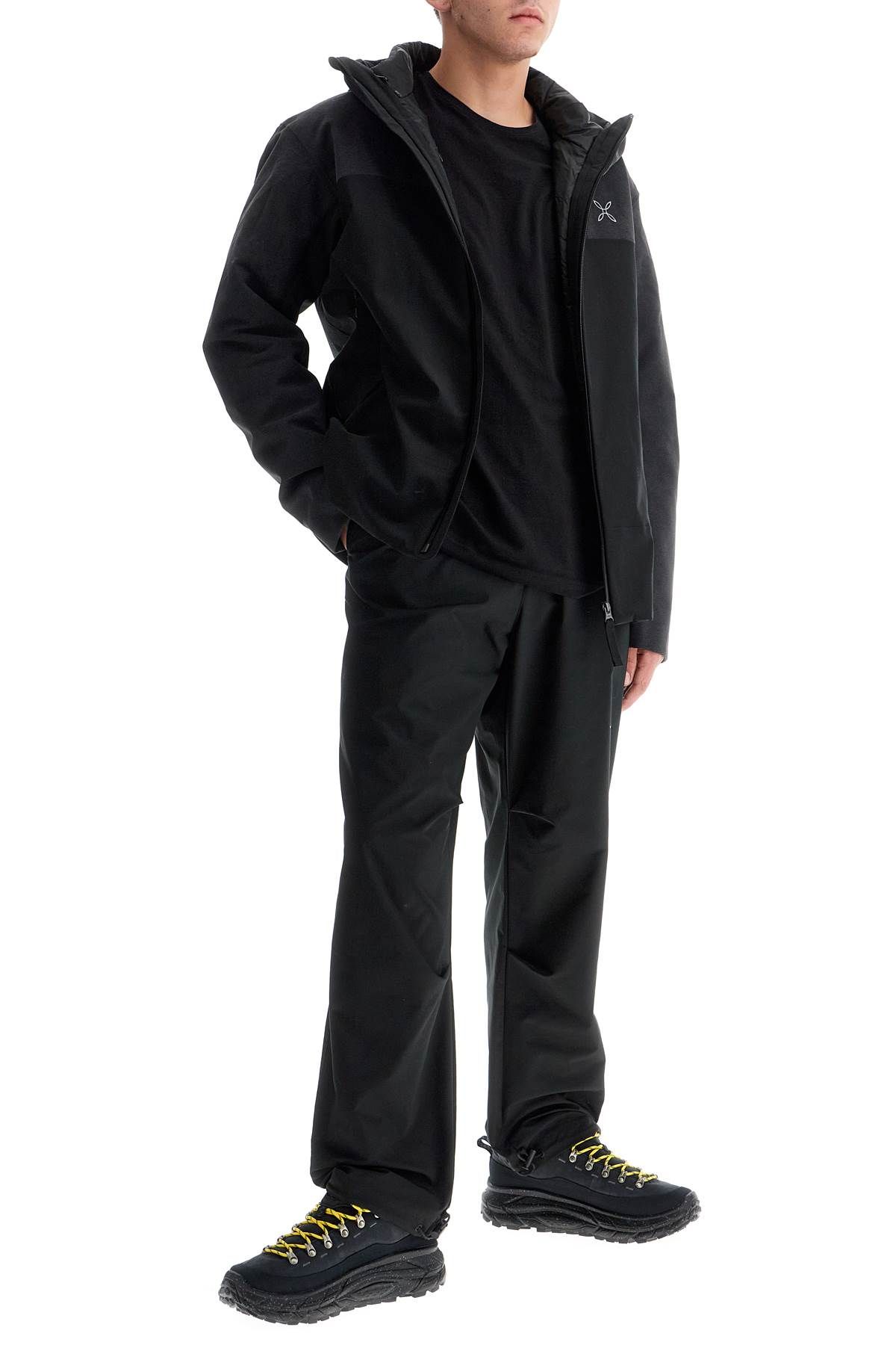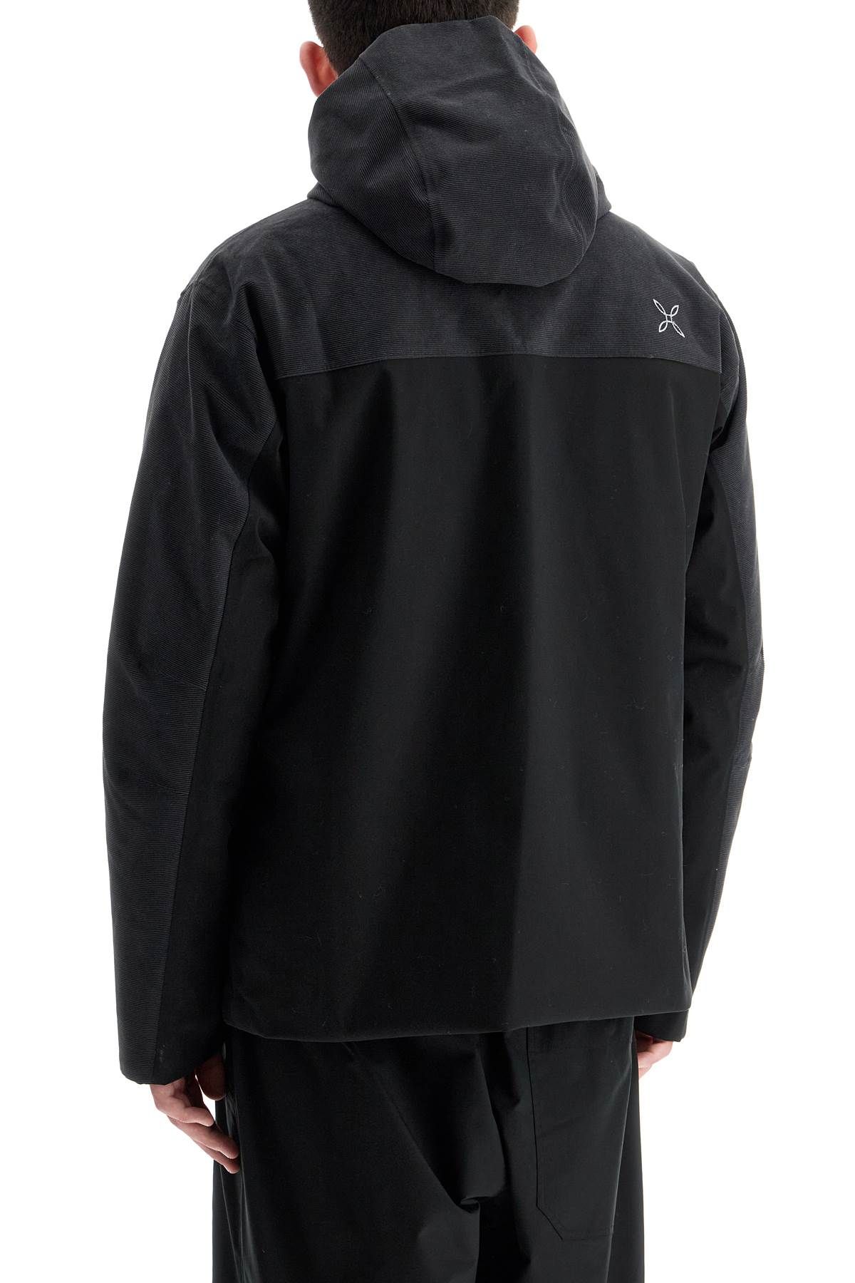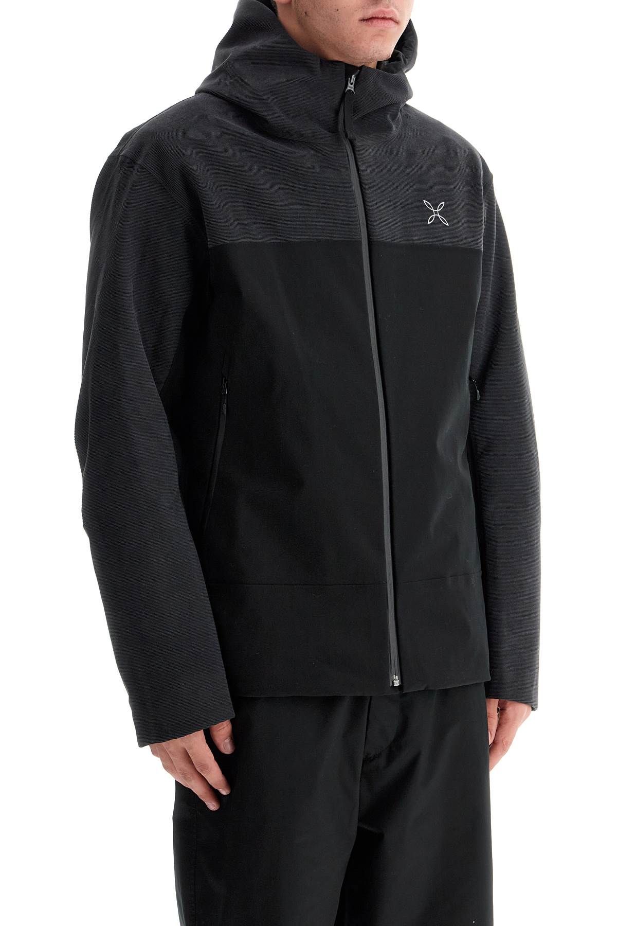The Montura hooded jacket is made of waterproof Pro-Meteo technical Oxford fabric with a cotton-like feel, featuring contrast velvet stripes, zip closure, side pockets with zips, adjustable hem and an inner pocket