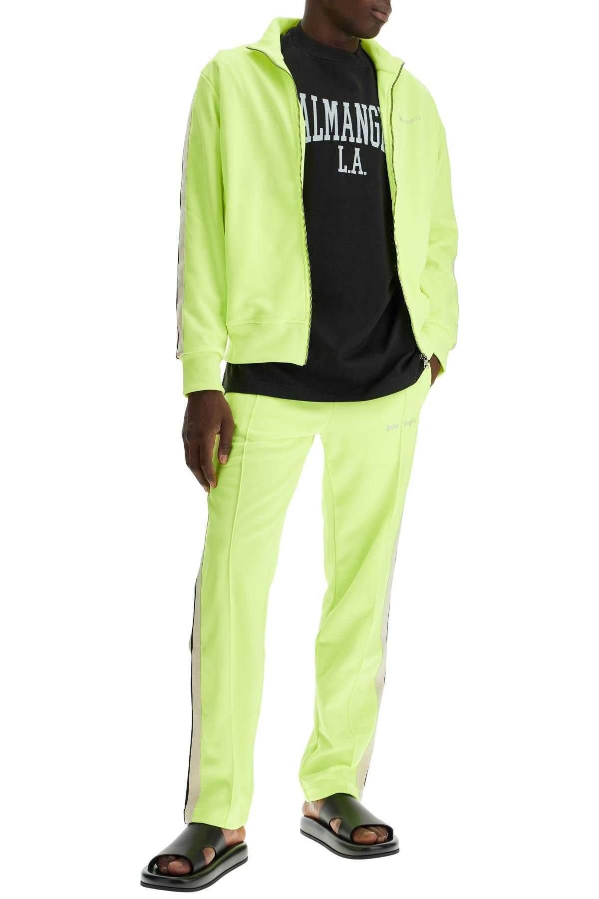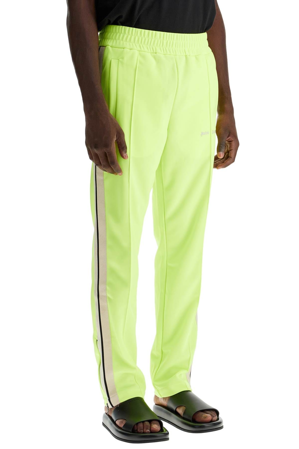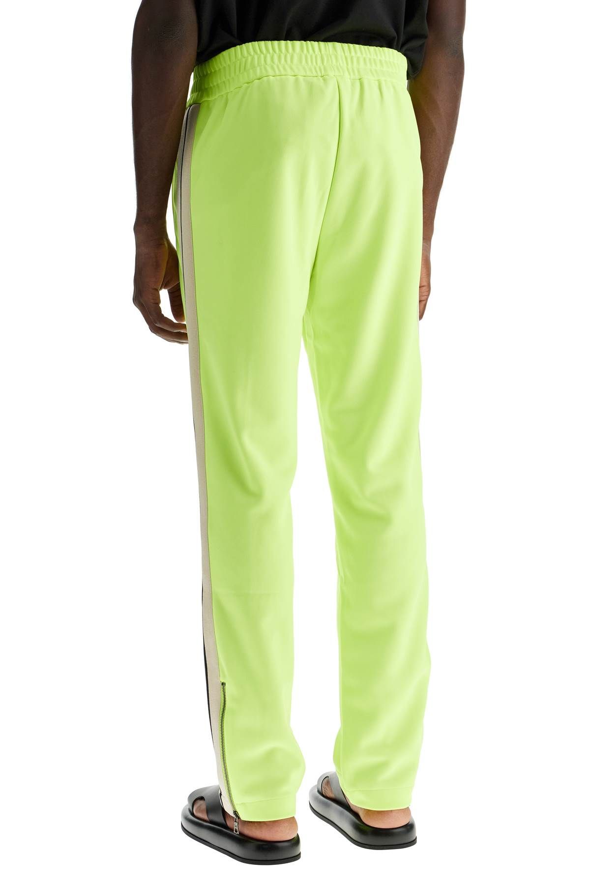 The Palm Angels Joggers Track are made of compact technical jersey with a glossy finish, enriched by contrasting side bands and embroidered lettering on the front