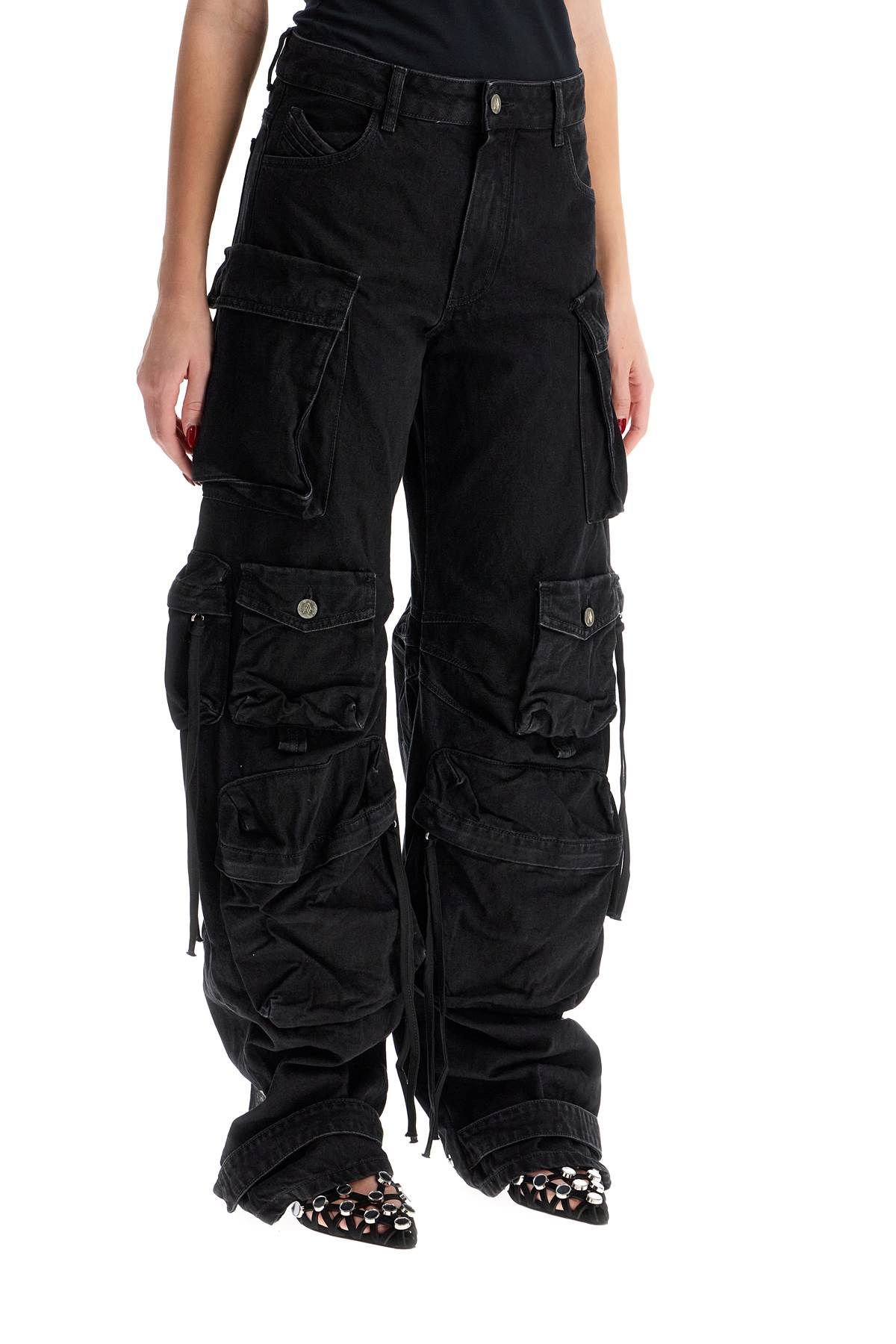 Cut from black denim, these low rise jeans from The Attico feature a barrel leg silhouette with adjustable cuff straps, enhanced by a cargo-style multi-pocket design