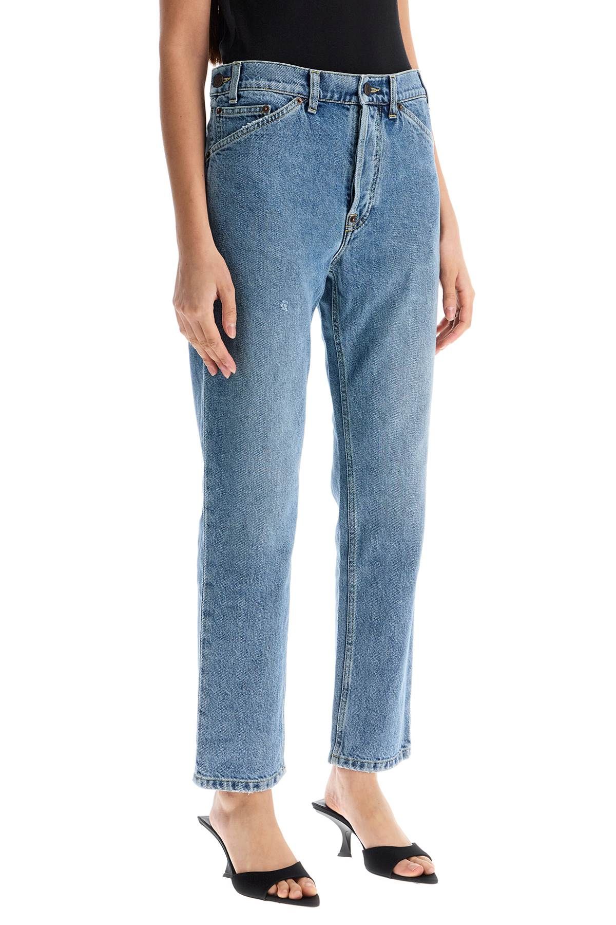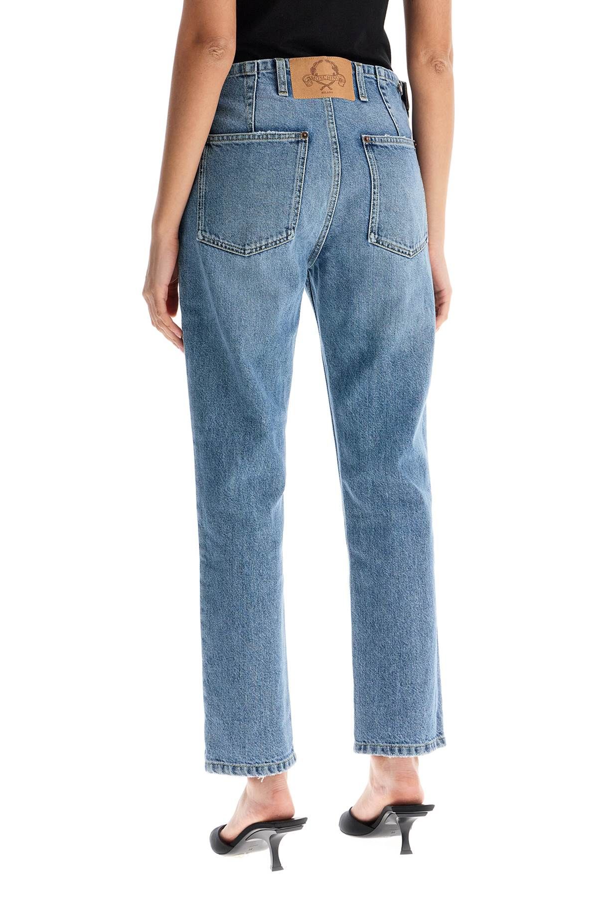 Moschino five-pocket jeans in distressed denim, featuring a slim fit with a medium-rise waist adjustable with buttons on the hips