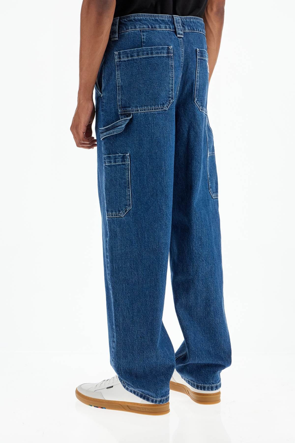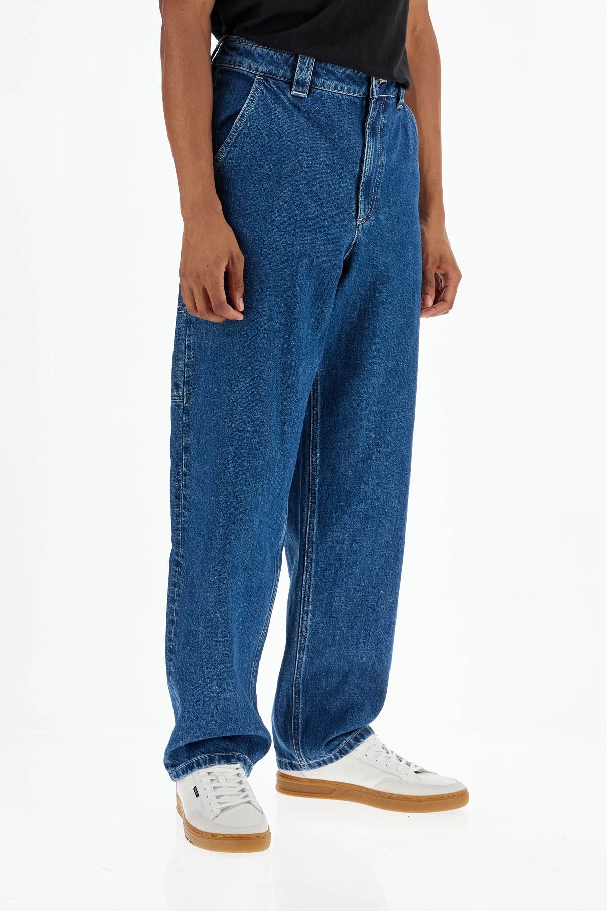 오가닉 코튼 인디고 블루 와이드 레그 진