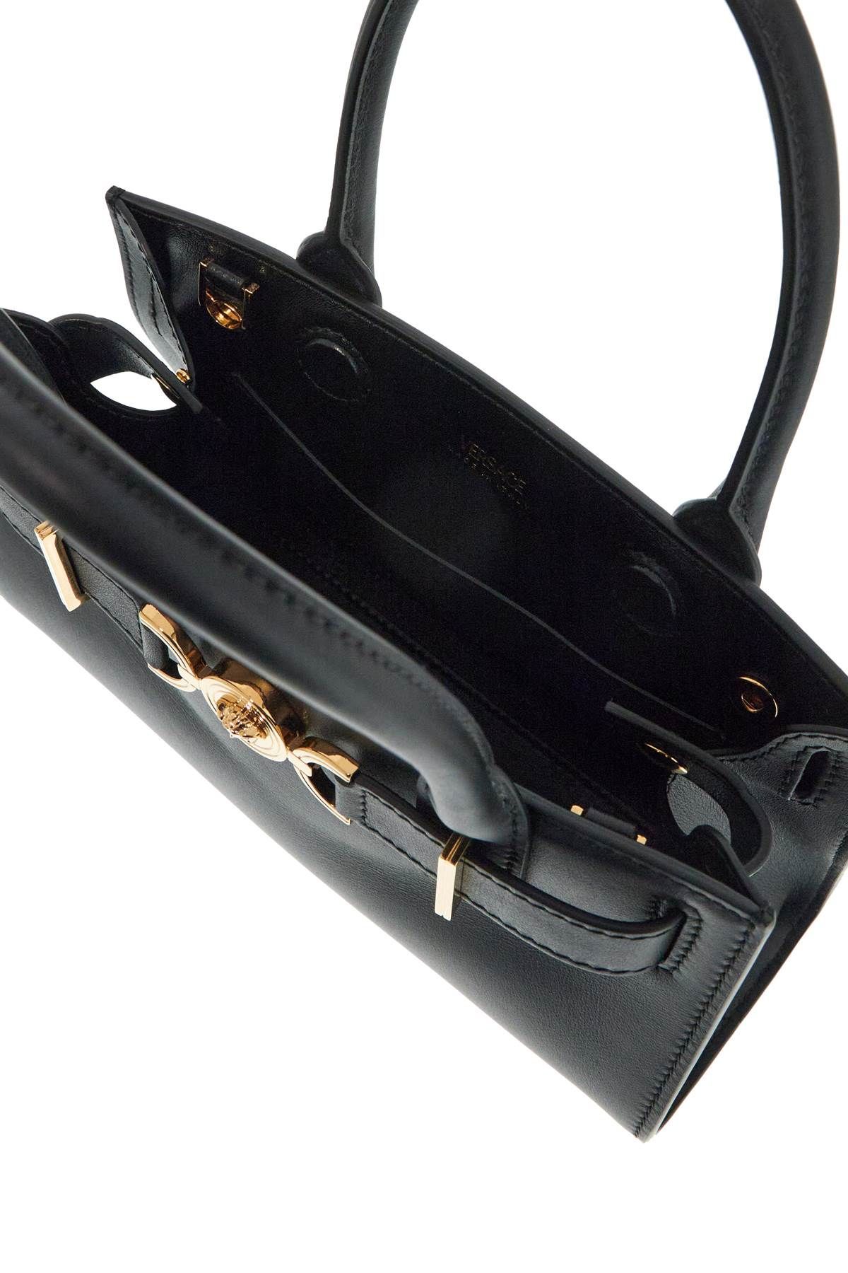 This small horizontal shopper bag from Versace is made of smooth leather and features a strap embellished with the iconic Medusa '95 customization