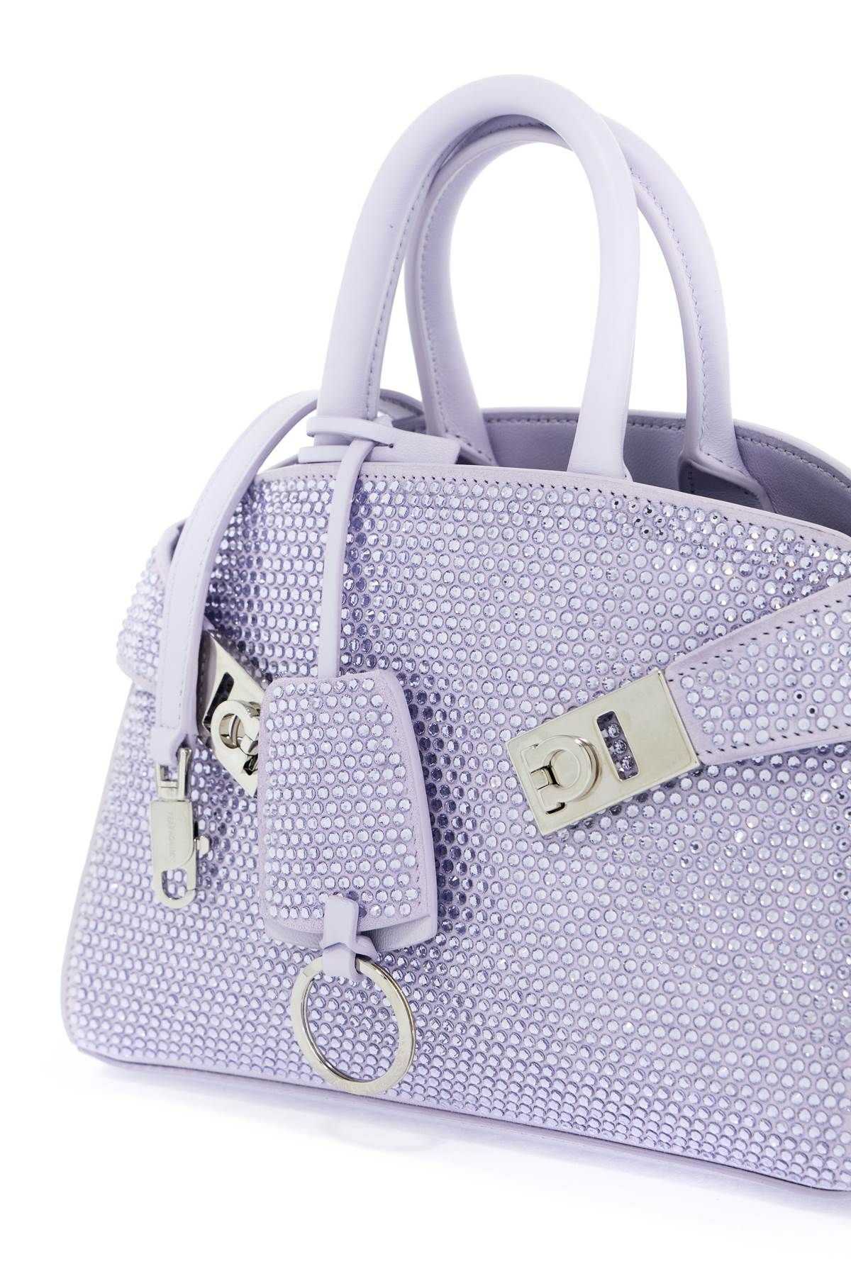 FERRAGAMO presents a sparkling version of the Hug handbag, made of suede leather and enriched with hand-applied micro crystals