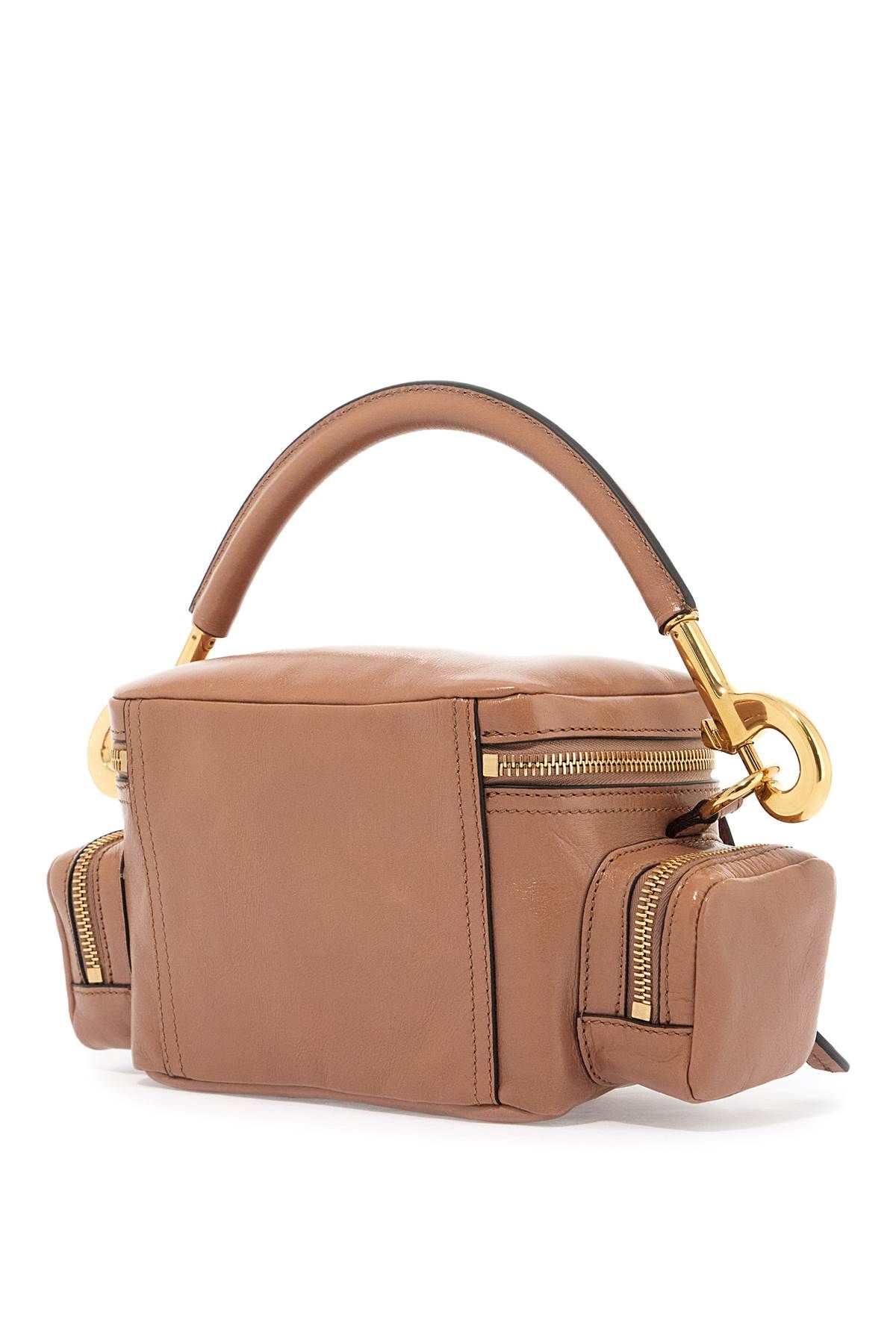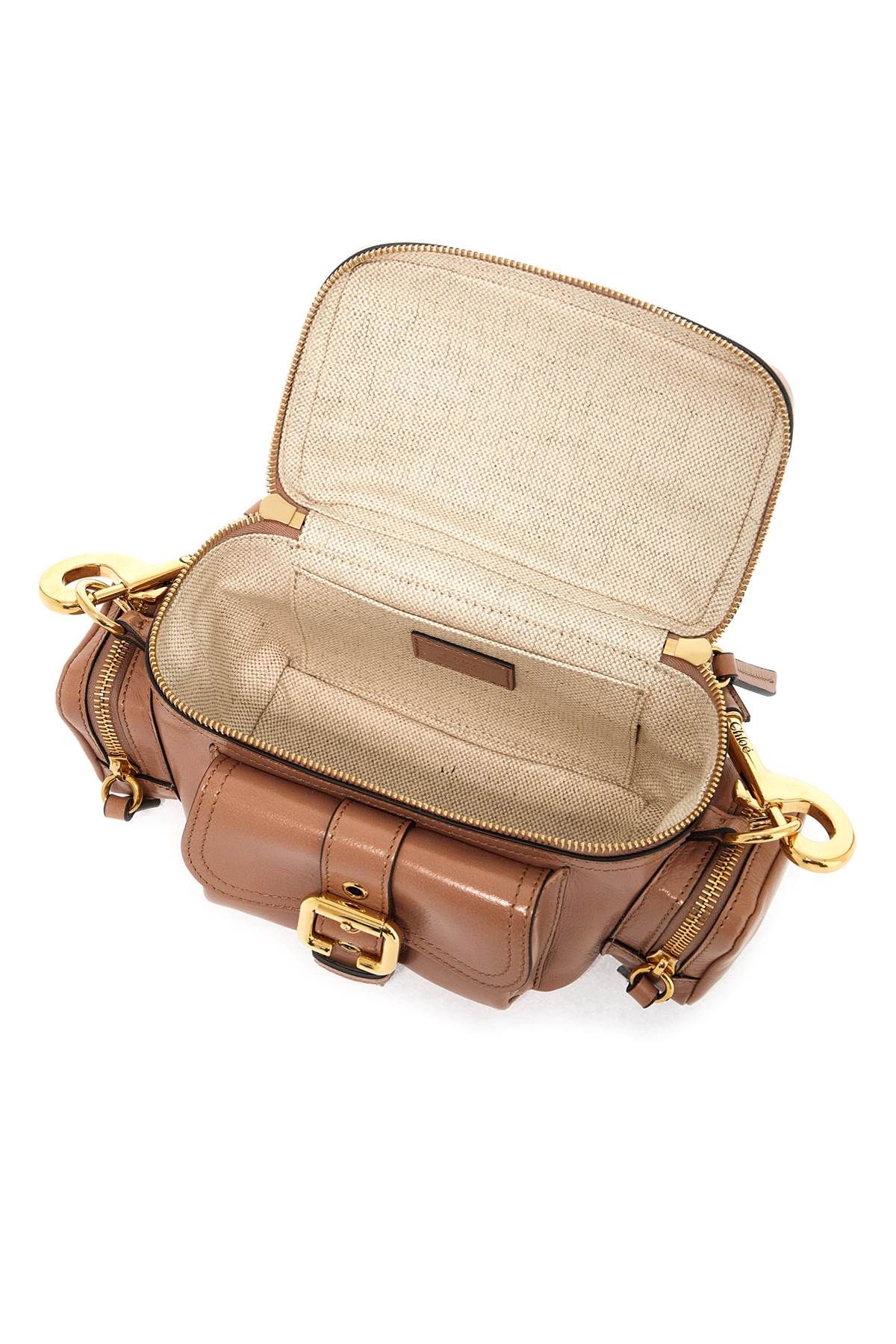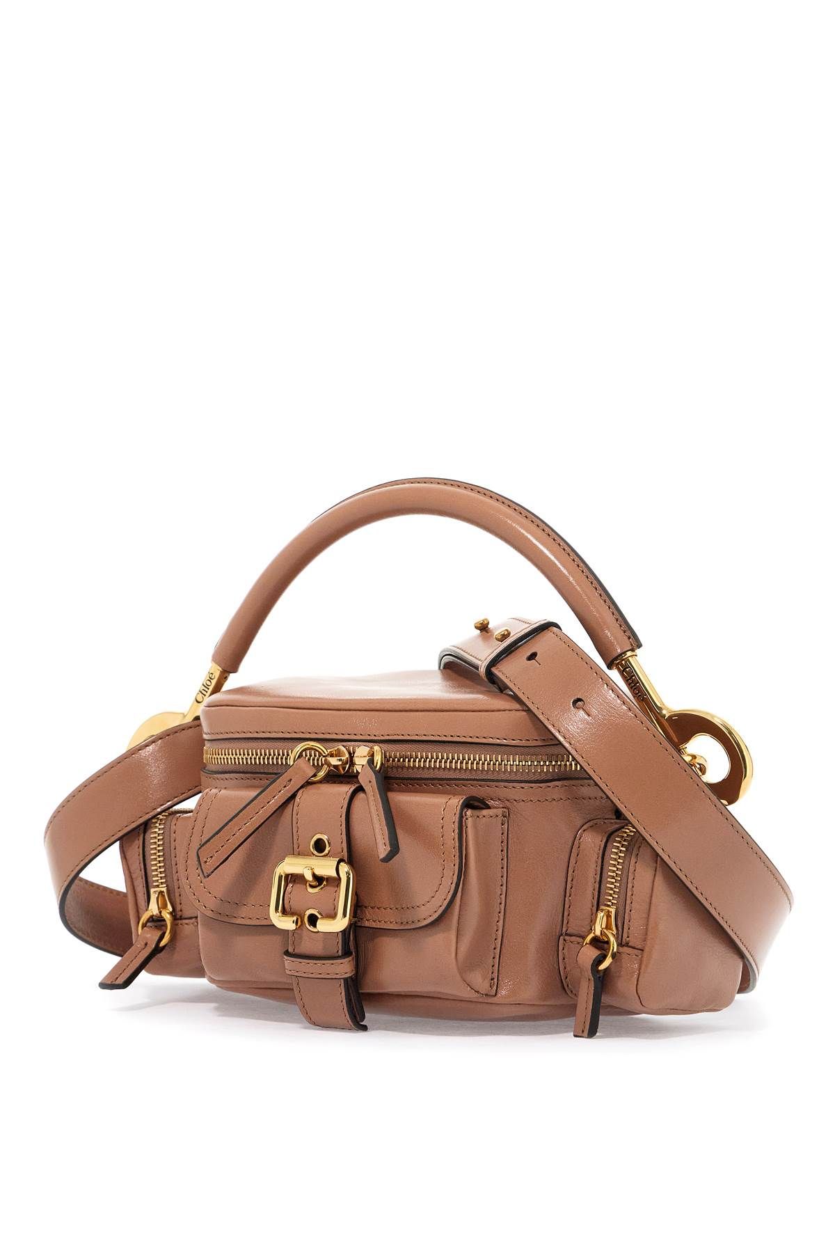 The small Chloé camera bag is made of glossy leather and features chunky pockets with zippers and a buckle