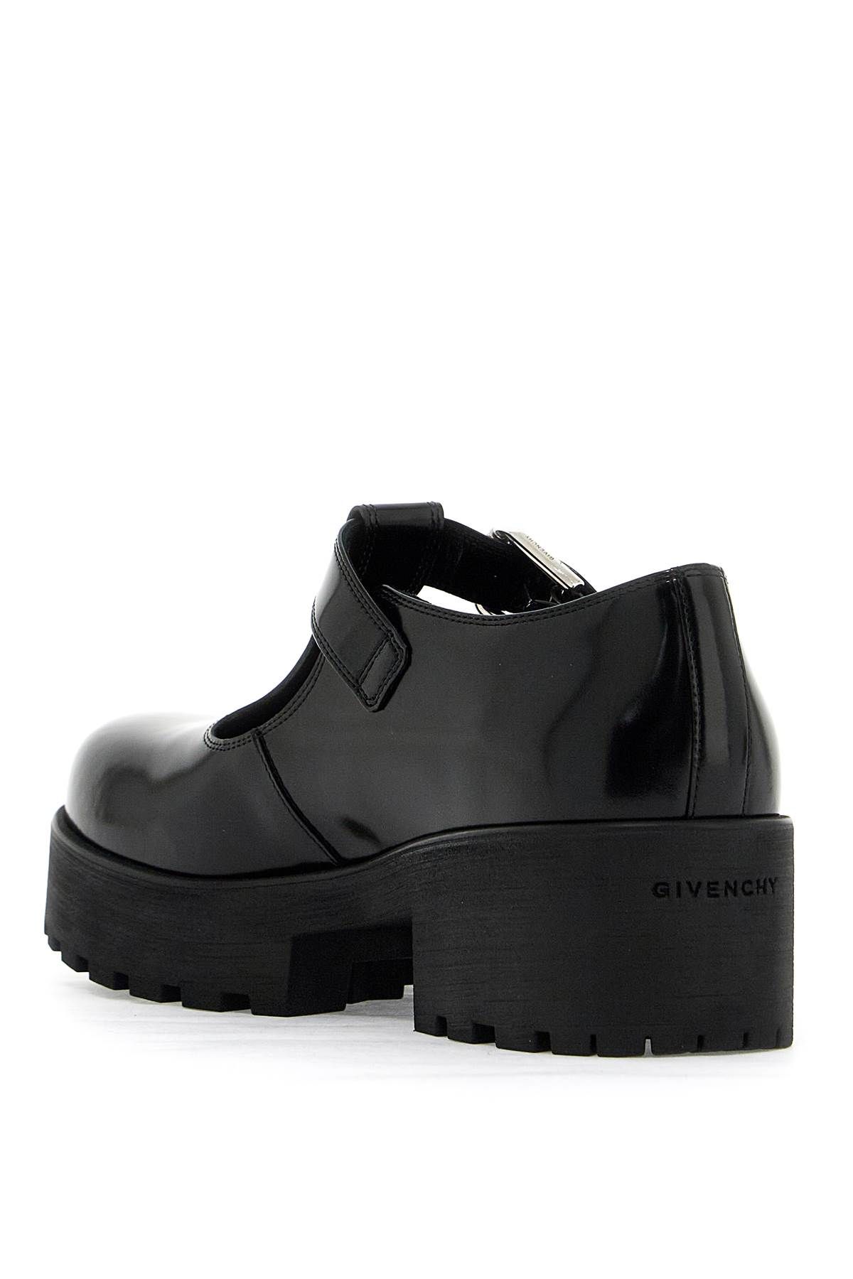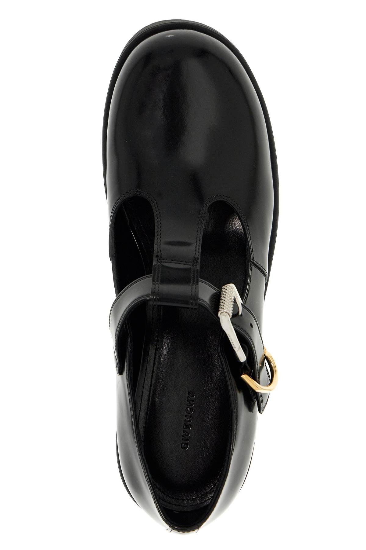 The Mary Jane Voyou babies by Givenchy are made of brushed leather with a buckle strap in gold and silver metal