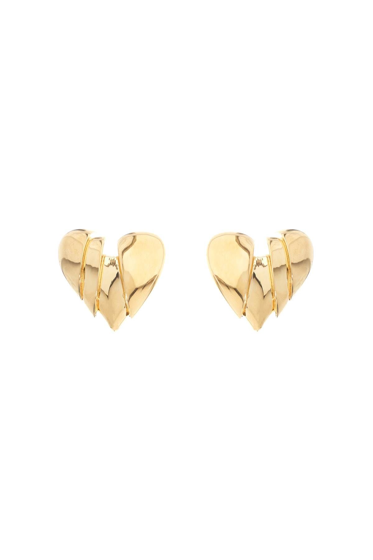 The Heartbreaker earrings by Amina Muaddi are made of silver-plated brass in the shape of a heart. They feature an omega clip closure, suitable for pierced ears.