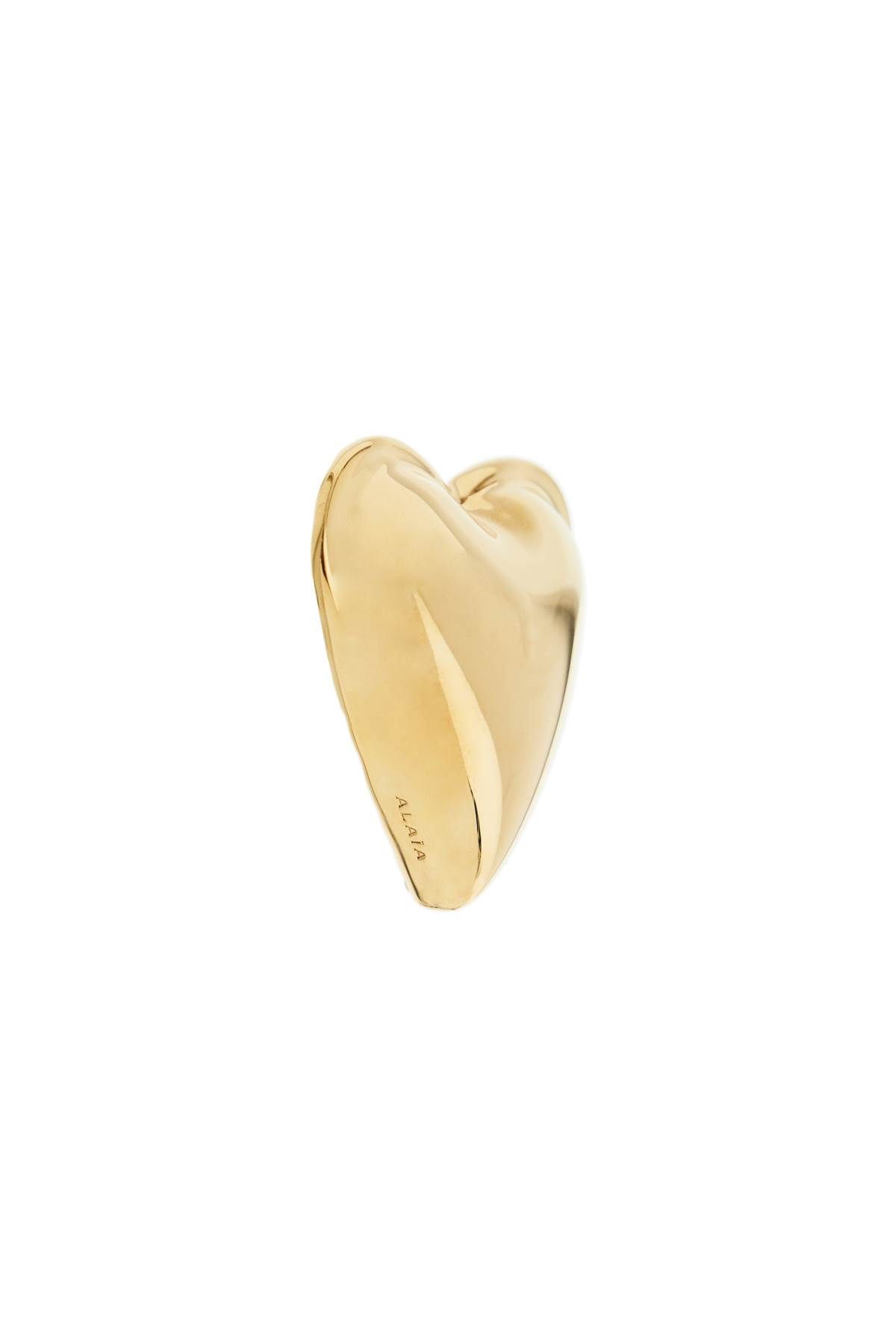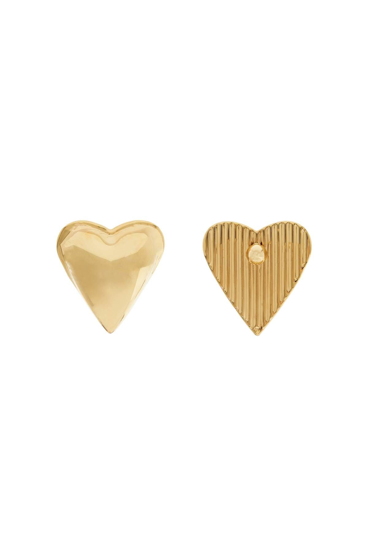 The Le Coeur BombAⓒ earrings by Alaia are made of brass with a gold finish and feature a heart-shaped, domed design