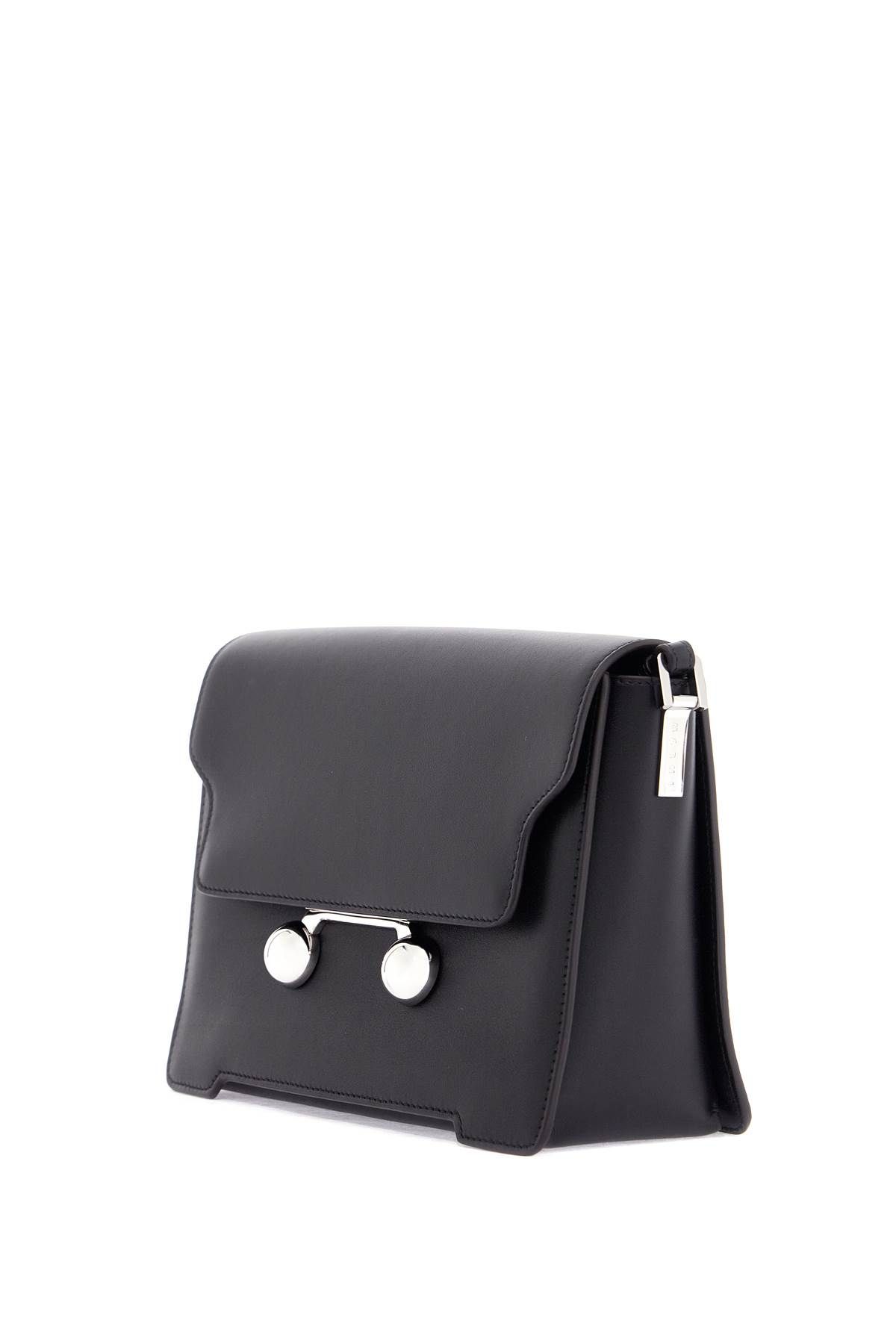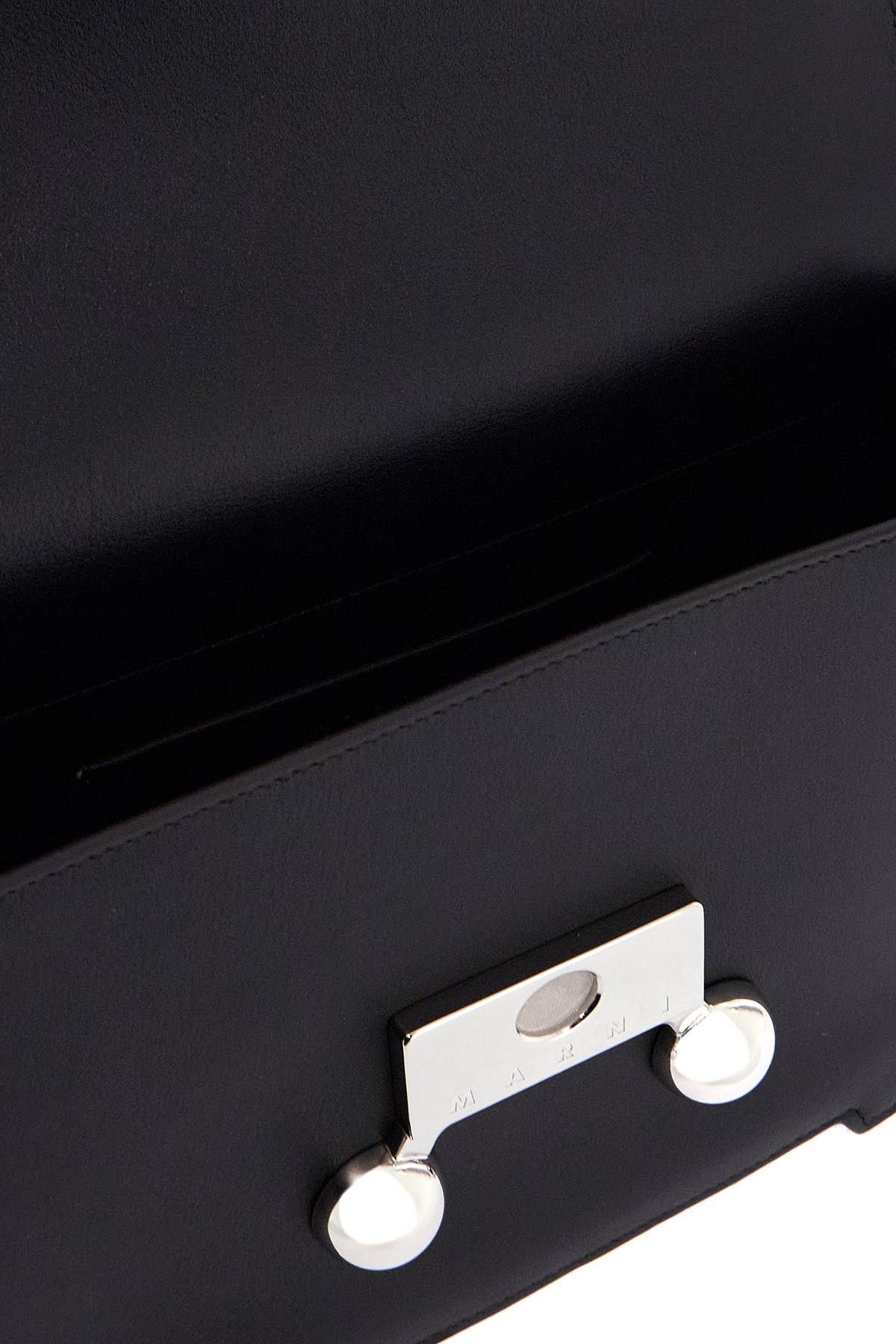 The medium Trunkaroo shoulder bag by Marni is made of leather with silver metal half spheres. It features a magnetic closure, a leather interior with an open pocket, and an adjustable strap.