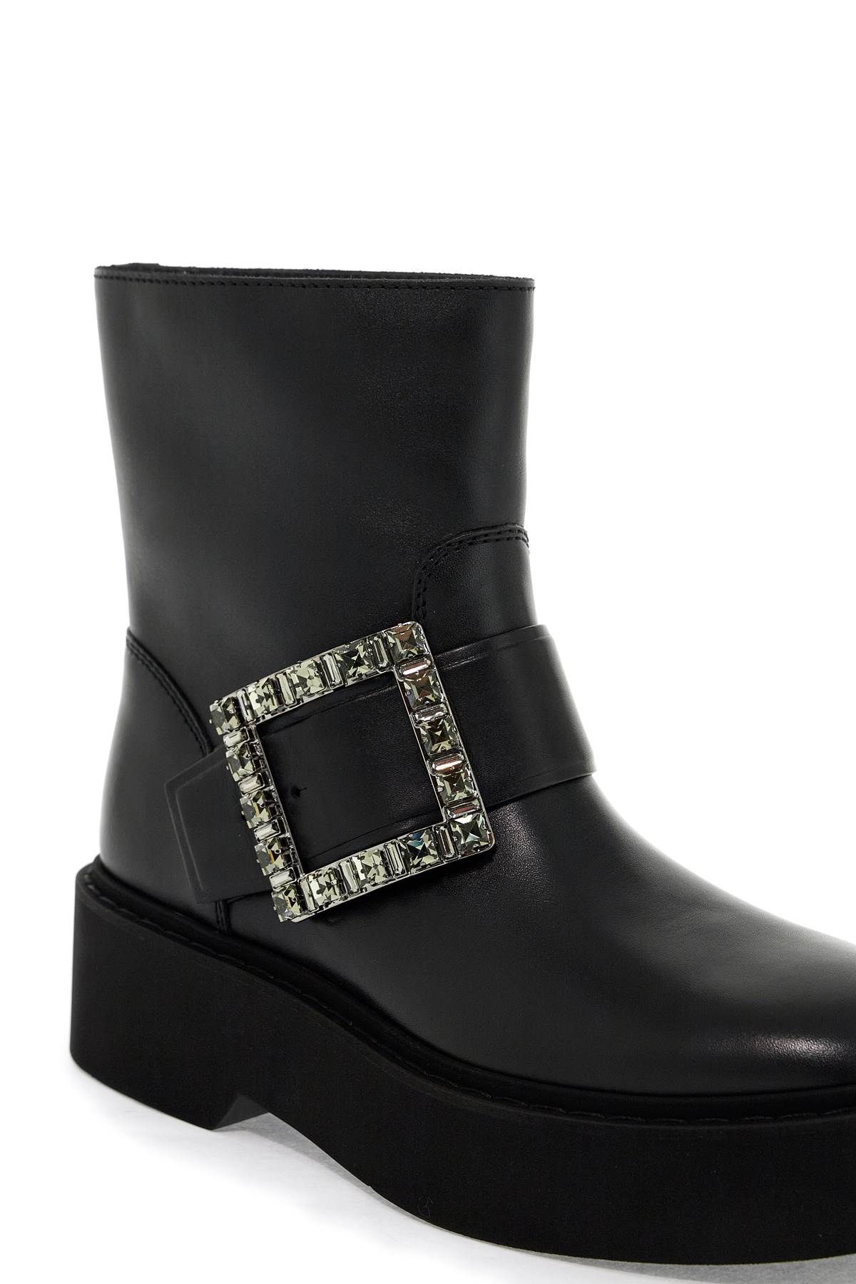 The Bikers Viv' Rangers by Roger Vivier are made of smooth leather with a strap embellished with the iconic crystal buckle. They feature a rounded toe, leather interior, and rubber sole.