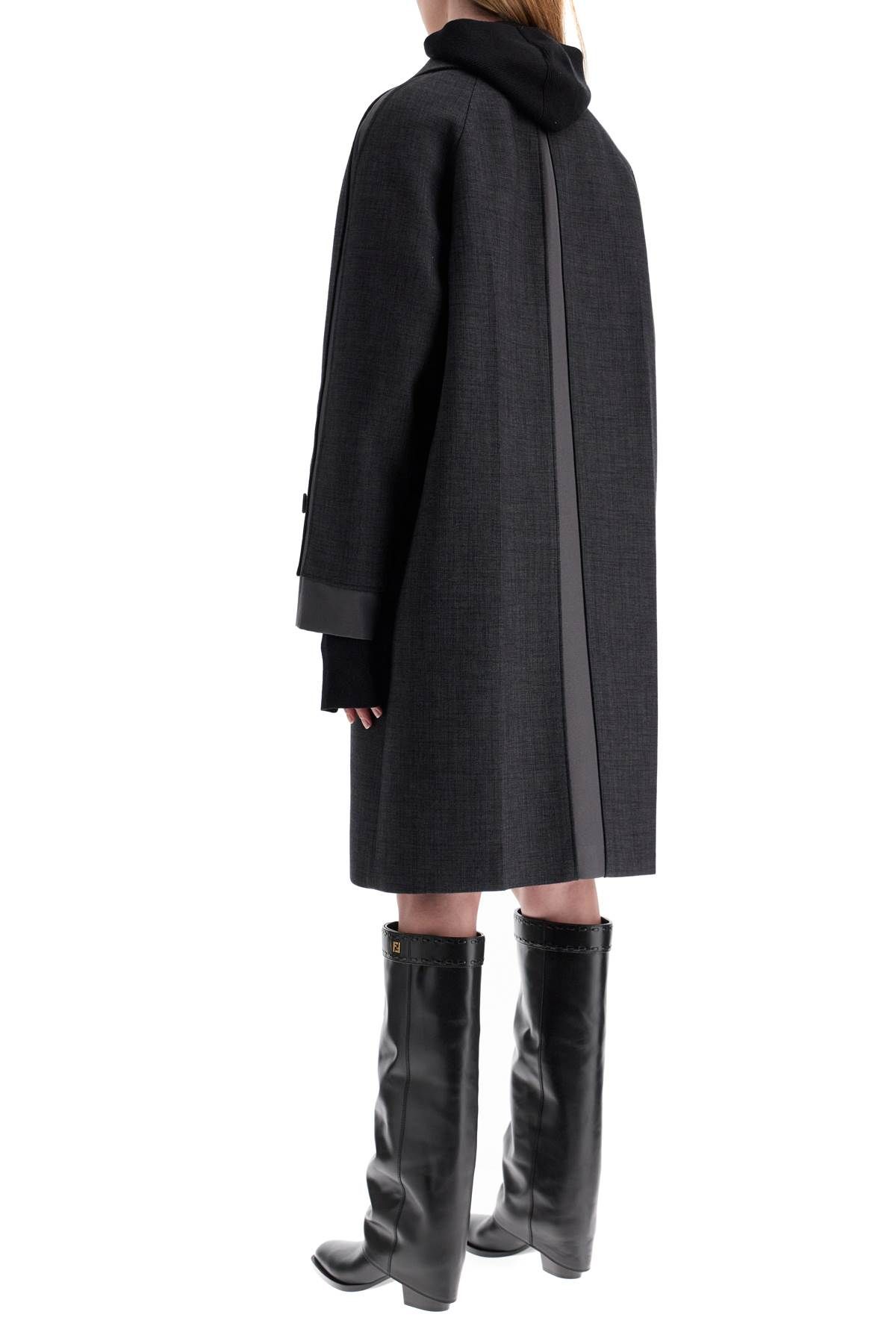 Fendi car coat made of cotton and wool blend nattAⓒ fabric, featuring contrasting gros-grain inserts that create a double-layer effect