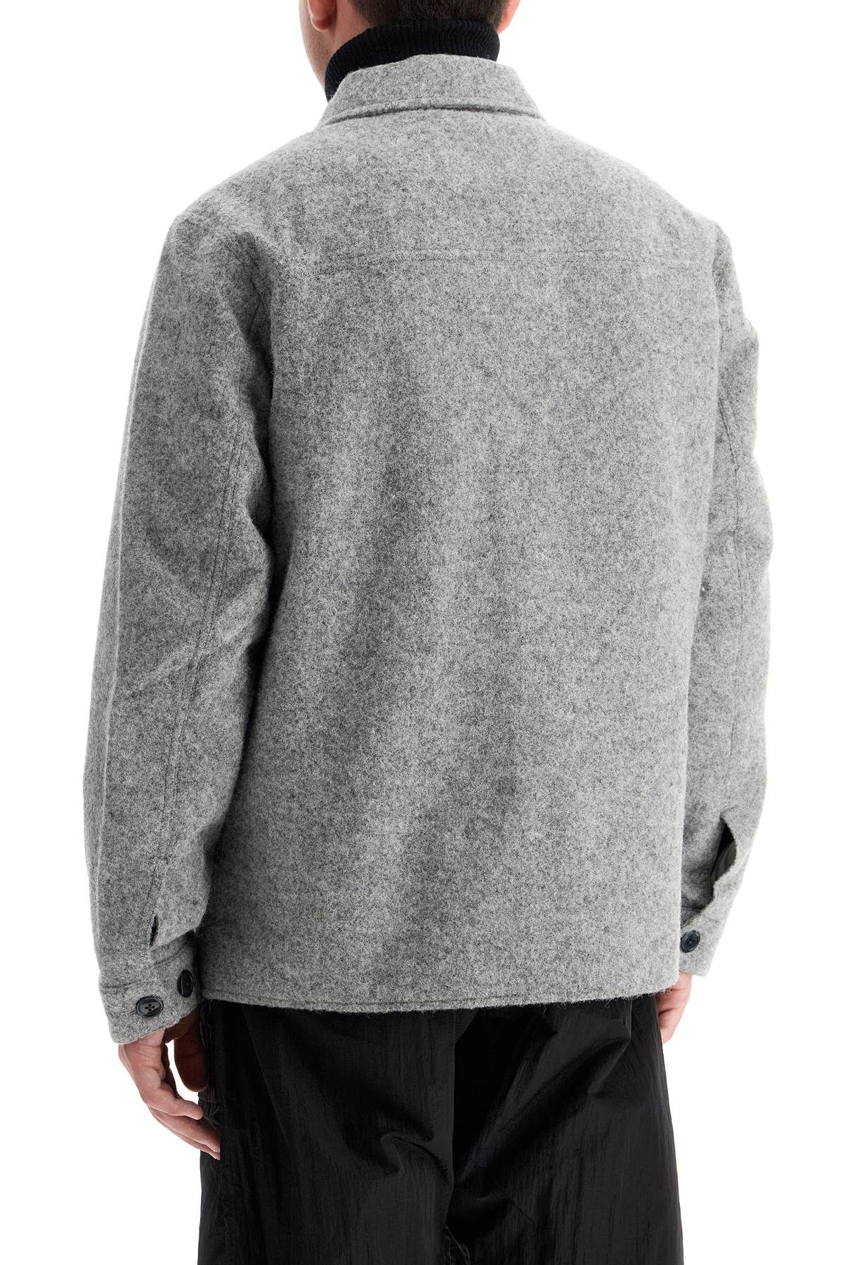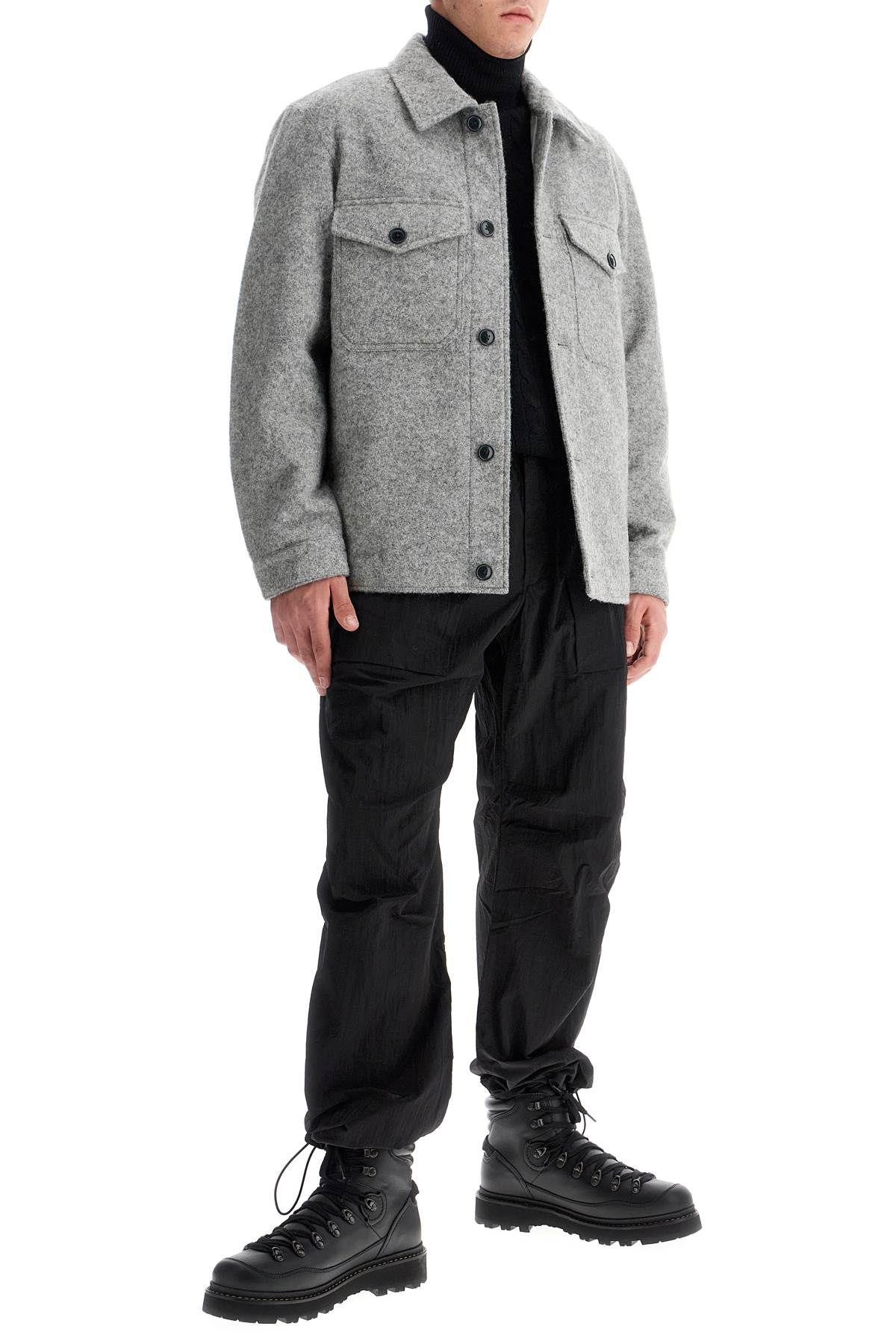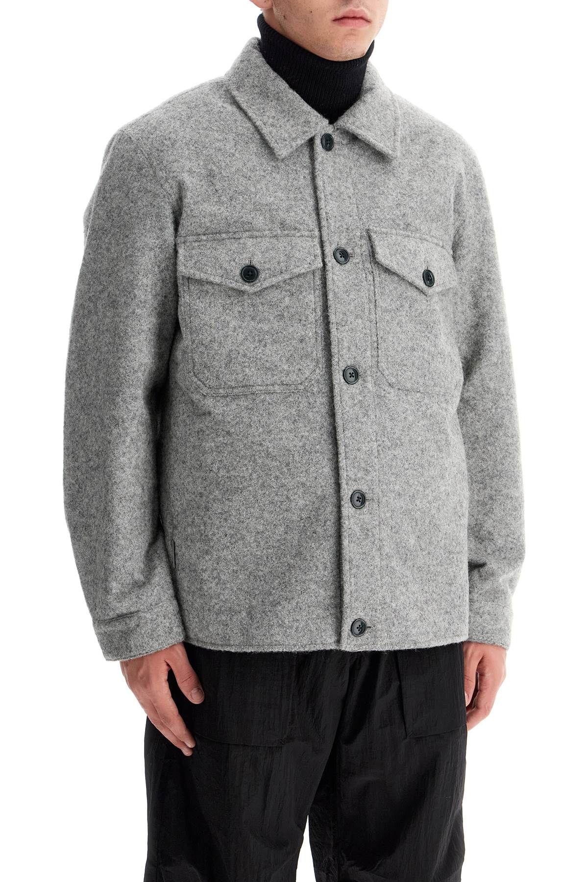 Crafted in a reflective wool blend with a straight cut, this Woolrich jacket features a shirt design with a collar, adjustable cuffs, button closure, two flap pockets on the chest and two inserted at the hips