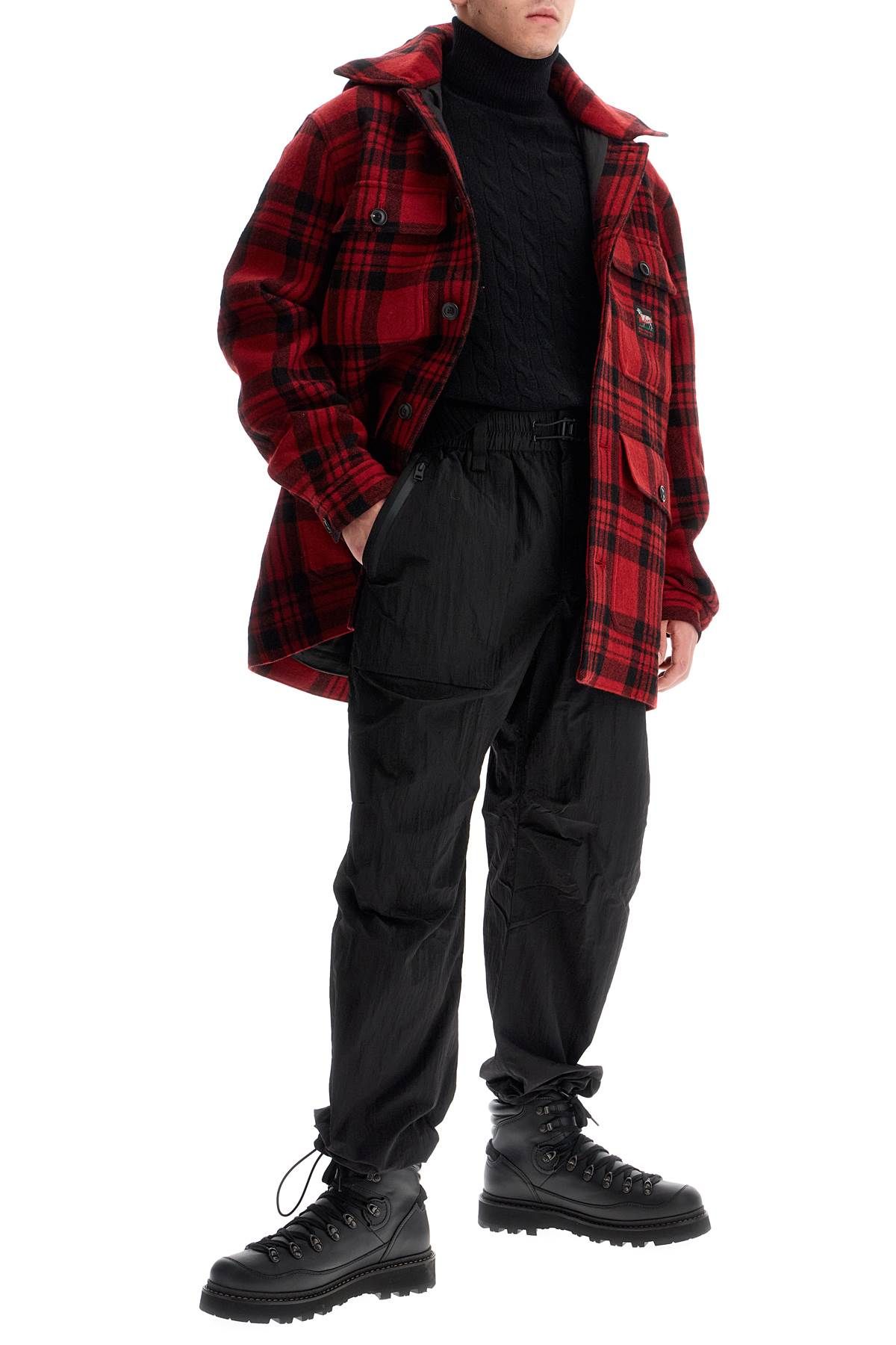 This Woolrich plaid jacket is made of a wool blend and features a shirt collar and detachable hood
