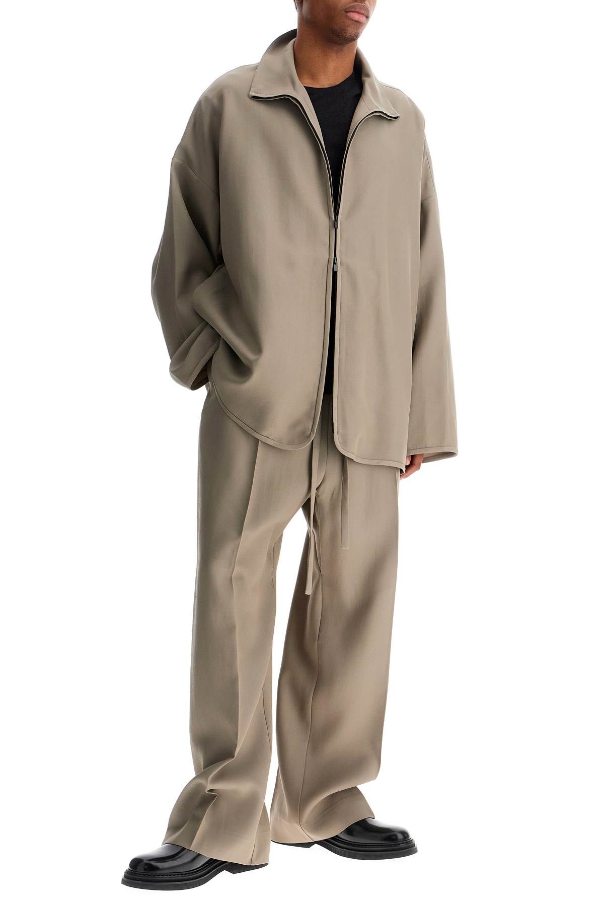 The FEAR OF GOD high collar jacket combines Italian elegance and contemporary design. Made from wool and viscose, it offers comfort and style. The Dusty Beige color and wide silhouette make it a versatile and refined piece.