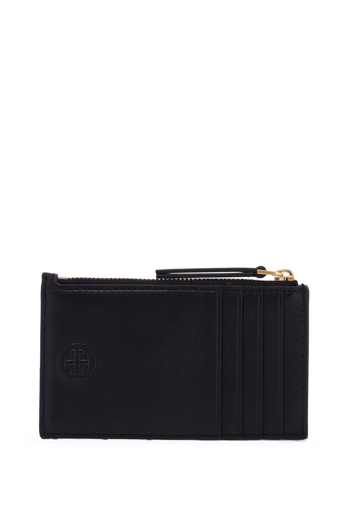 Tory Burch cardholder made of nappa leather and finished with diamond quilting on one side and tone-on-tone embossed monogram on the other. Three card slots and one zippered pocket.