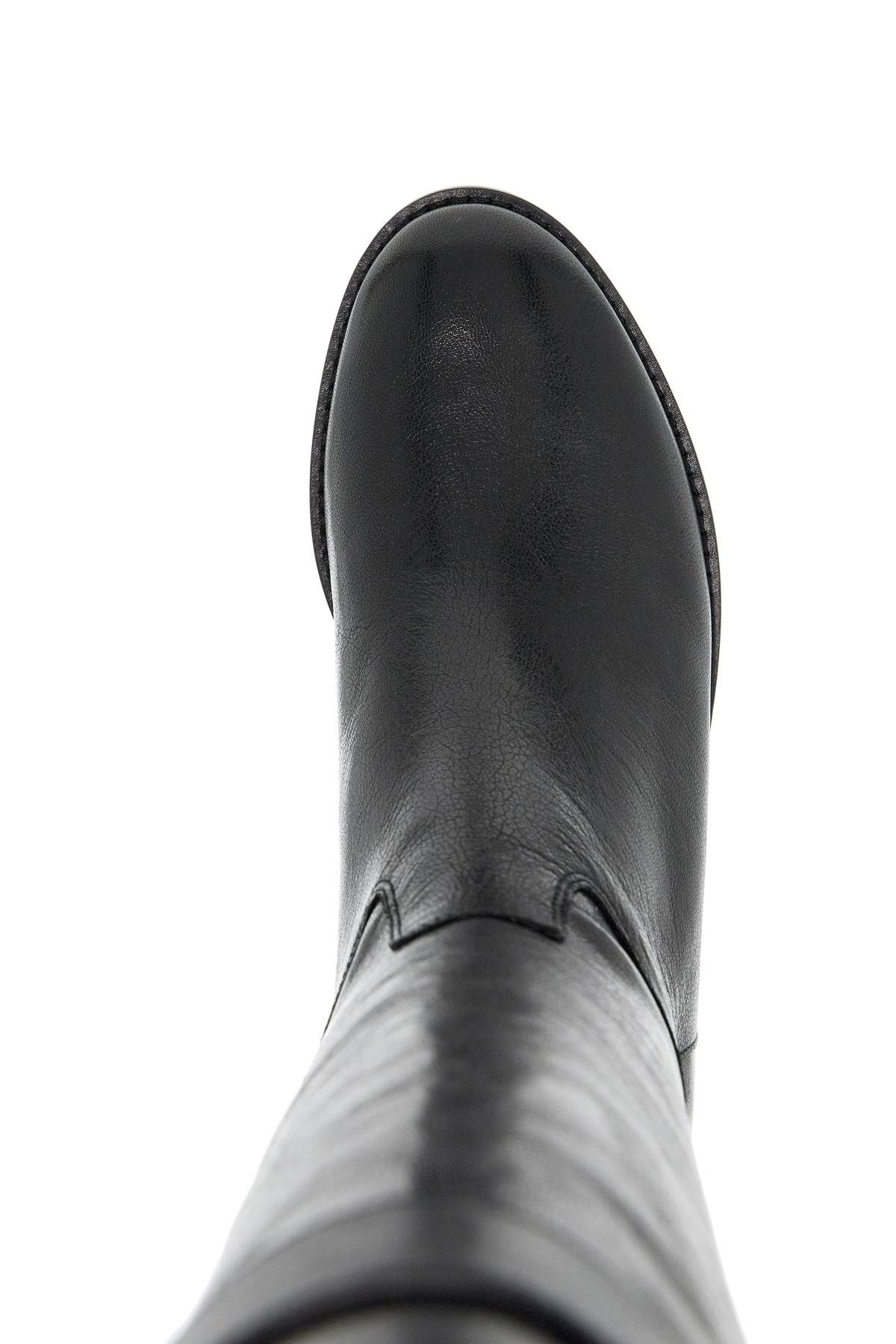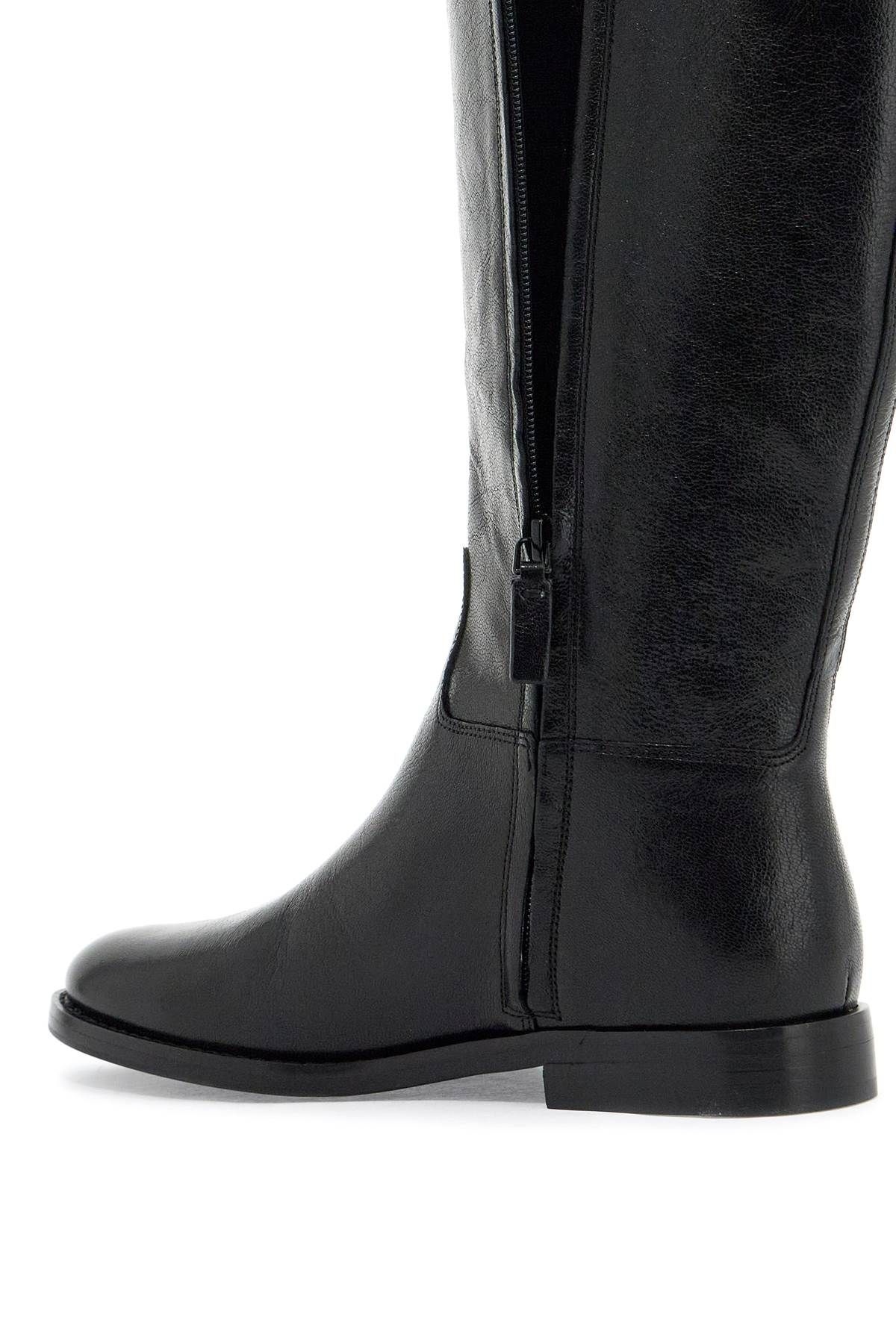 The Tory Burch riding boot is made of textured leather with a side zip closure and T Lock detail