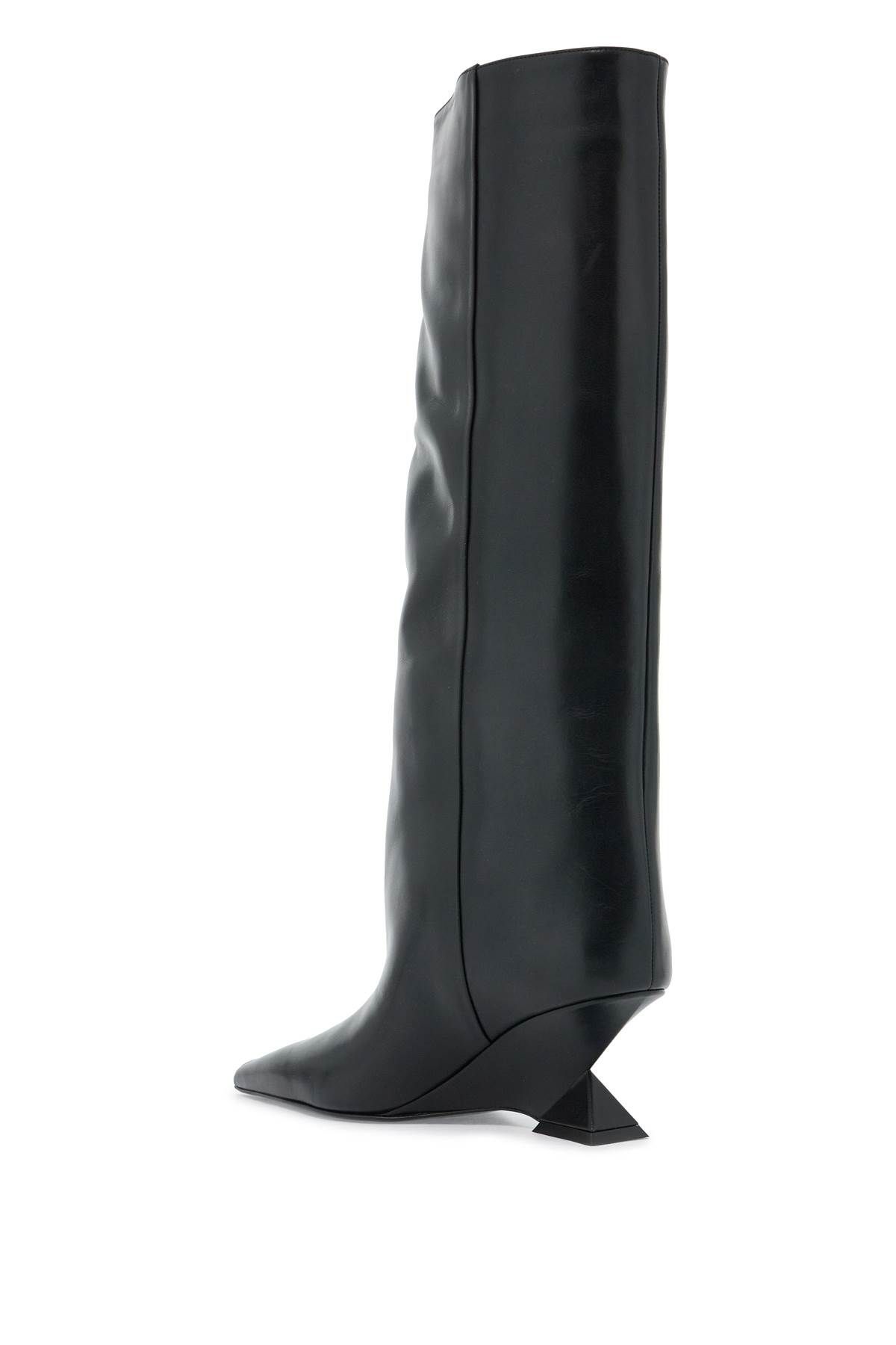 Cheope leather tube boots by The Attico with iconic pyramid heel. Leather lining and leather sole.