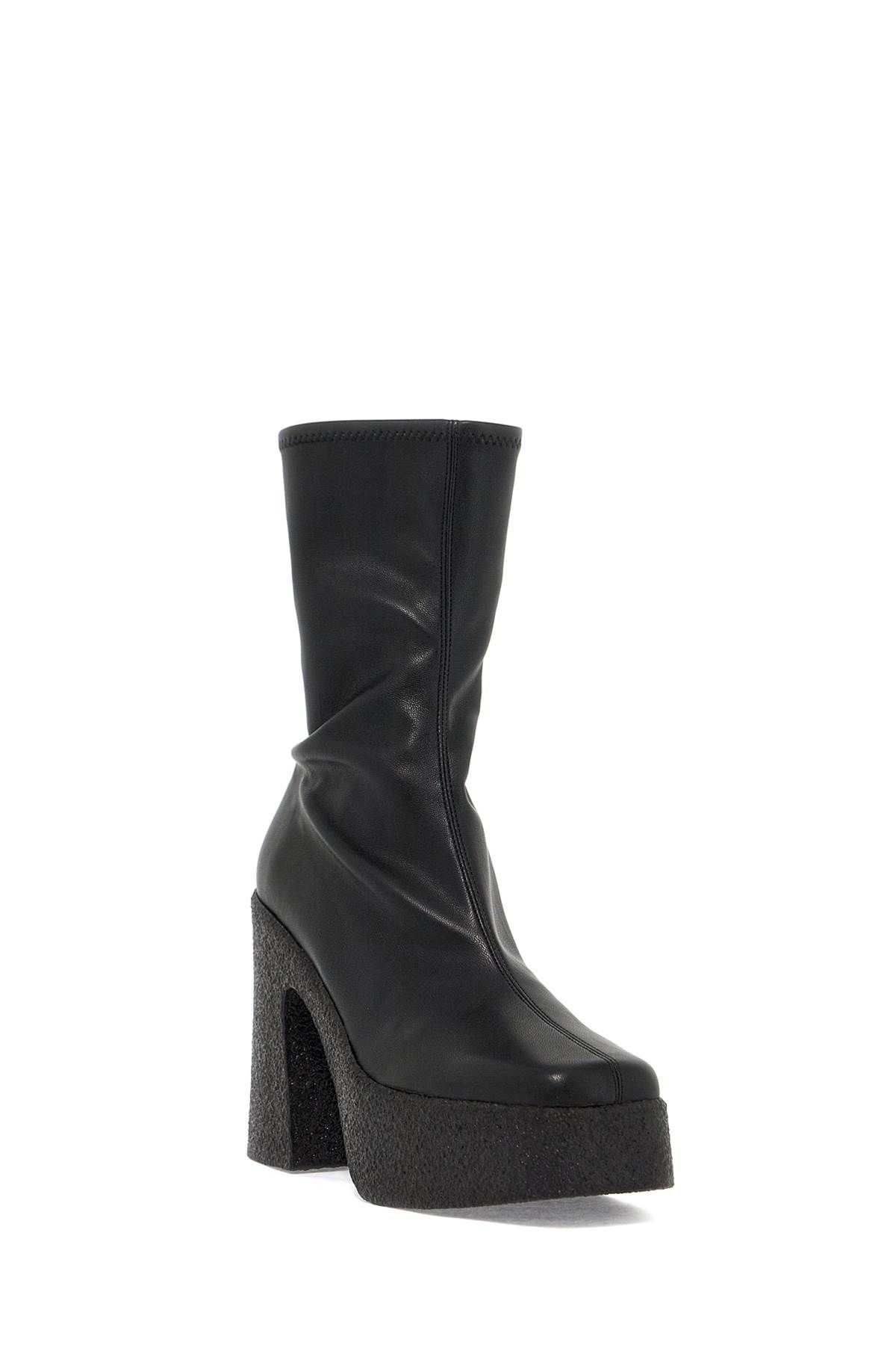 Stella McCartney boots made of smooth stretch faux leather with thick heel and plateau in rough rubber