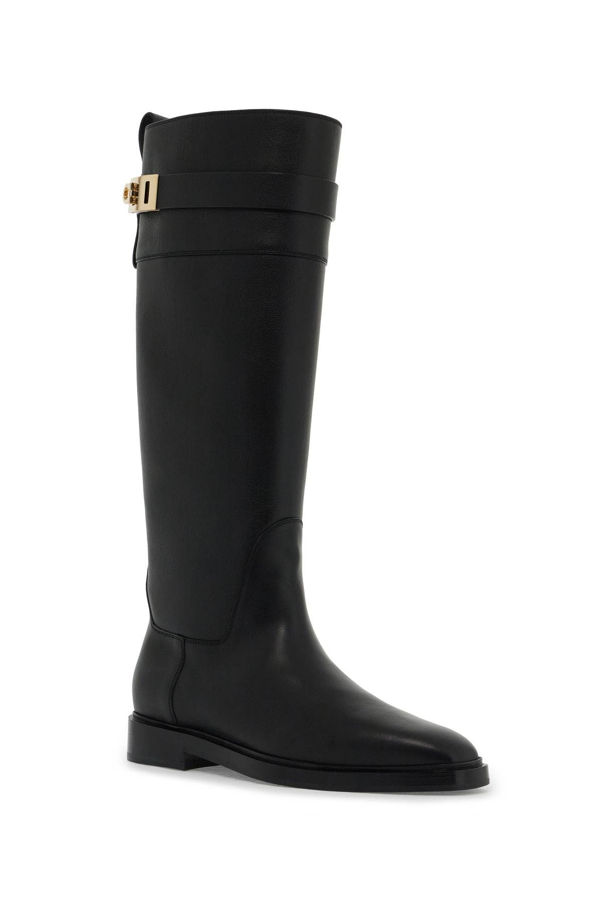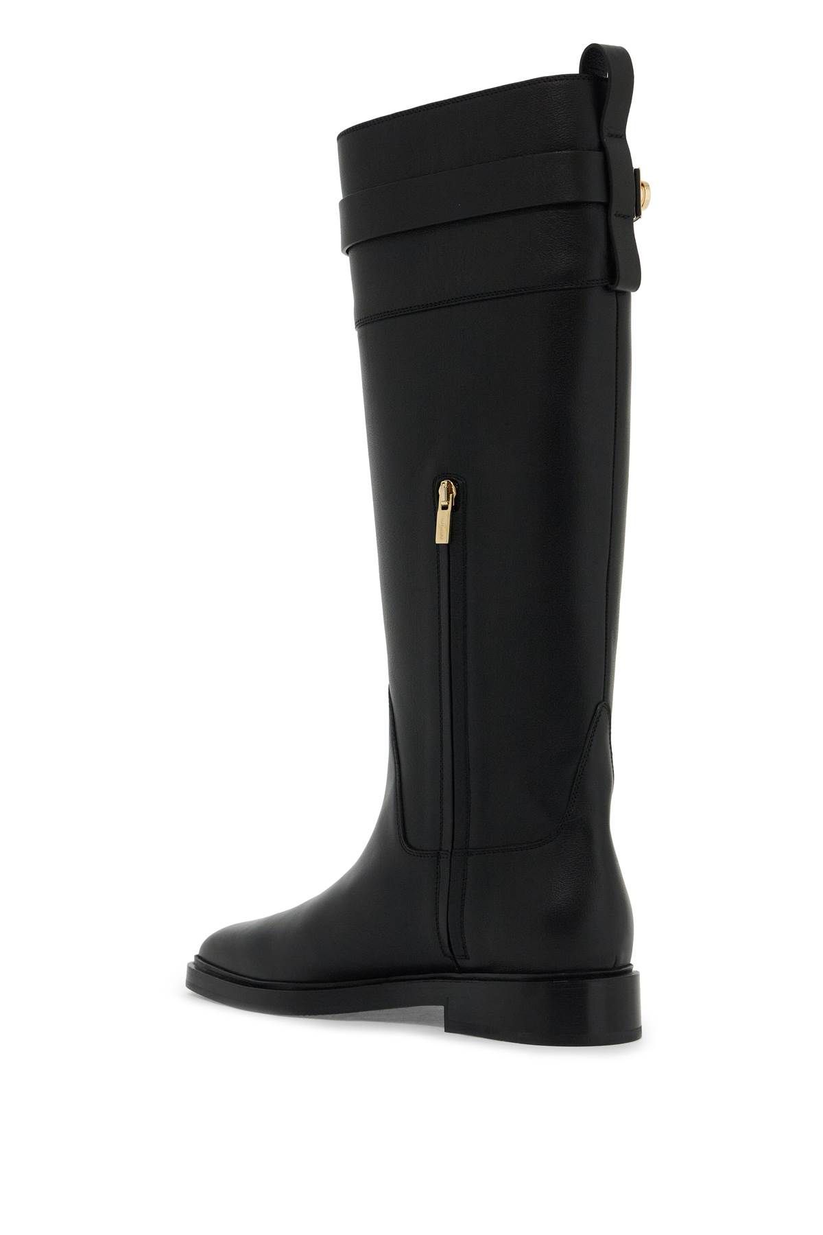 FERRAGAMO boots made of smooth leather with an equestrian-inspired design and a golden metal Gancini detail on the shaft. Leather interior, rubber sole, and leather welt. Fit: 1C.