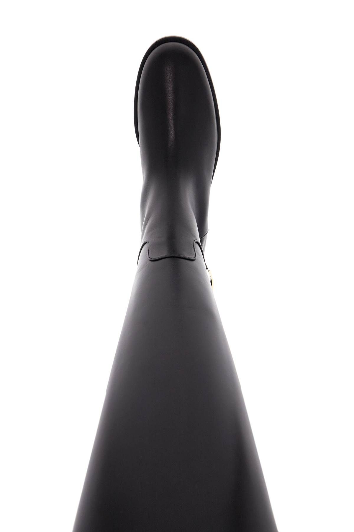 These Roger Vivier high boots are crafted in smooth leather and adorned with the iconic Tres Vivier golden metal buckle