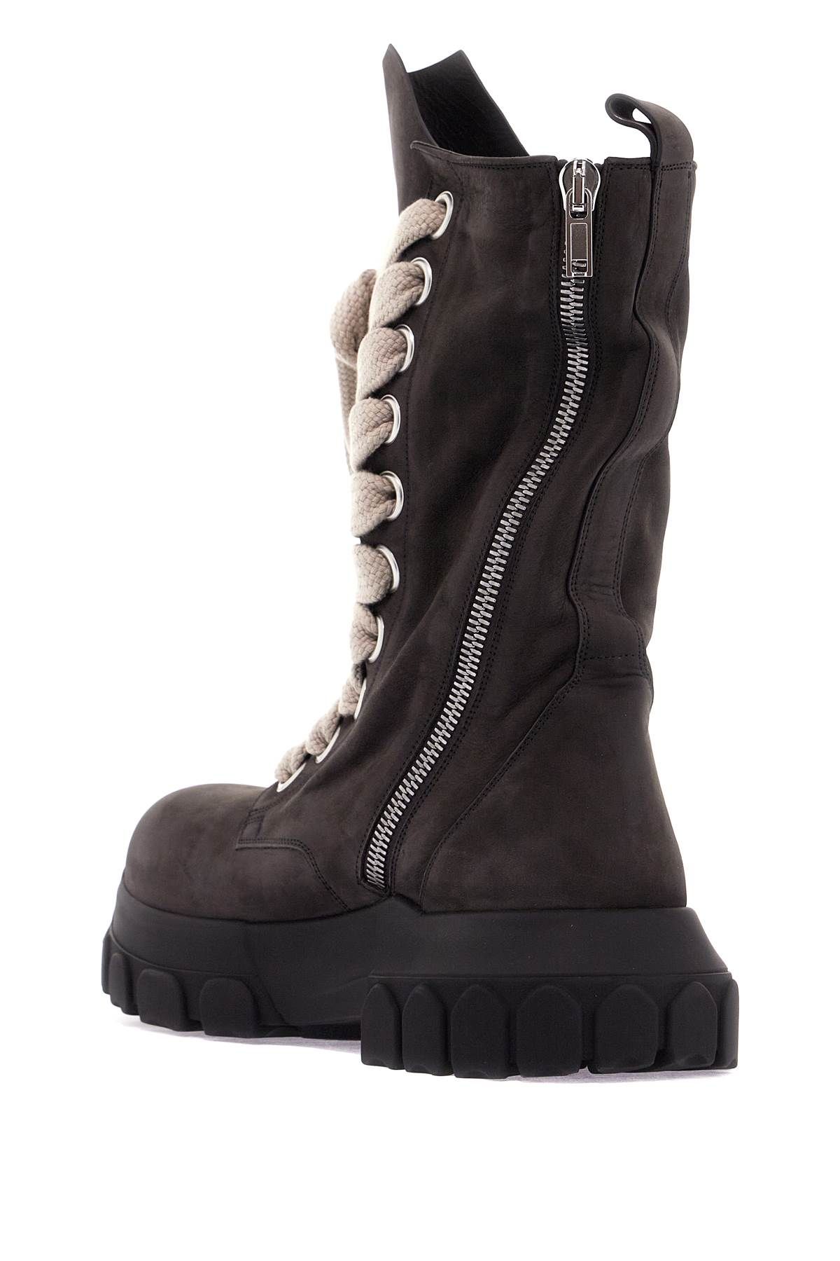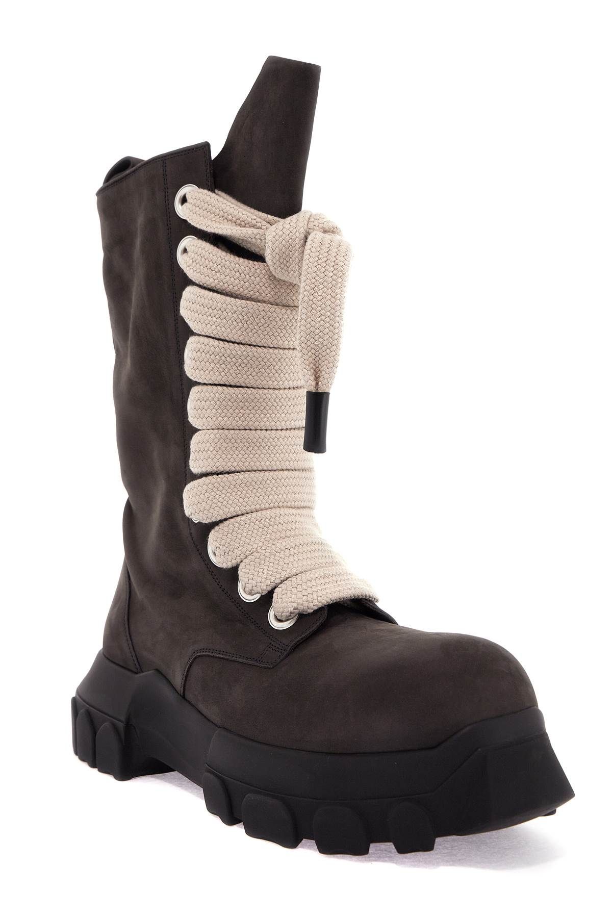 The Jumbolace Army boots by Rick Owens are made of nubuck leather and feature oversized laces and tongue