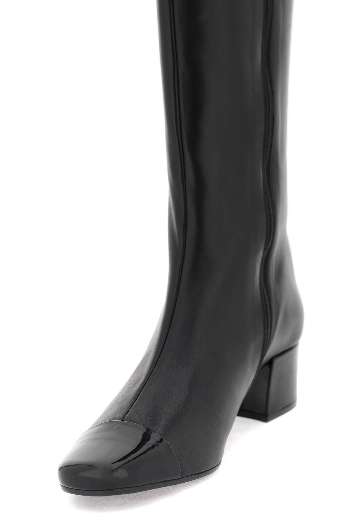 Nappa leather malaga boots by Carel with tone-on-tone patent leather cuban heel