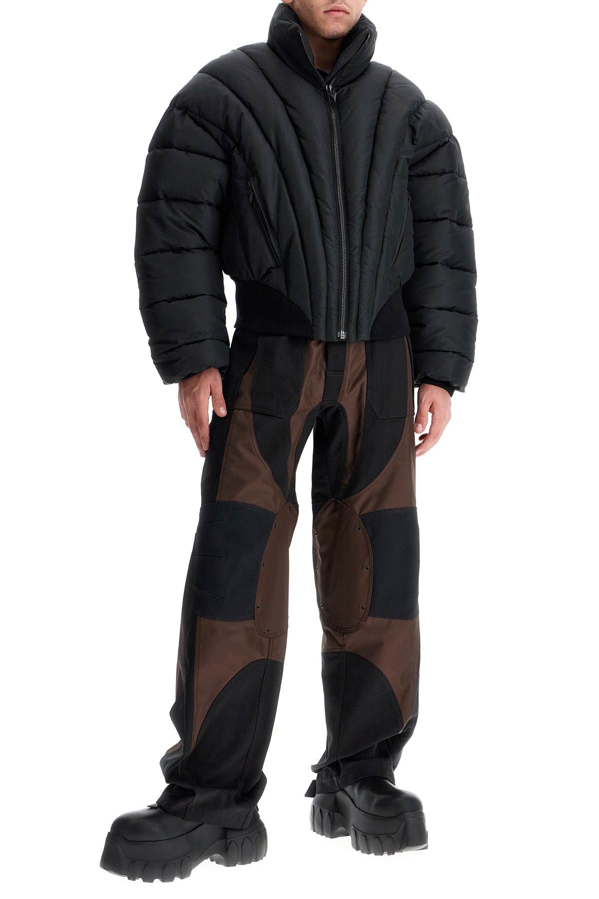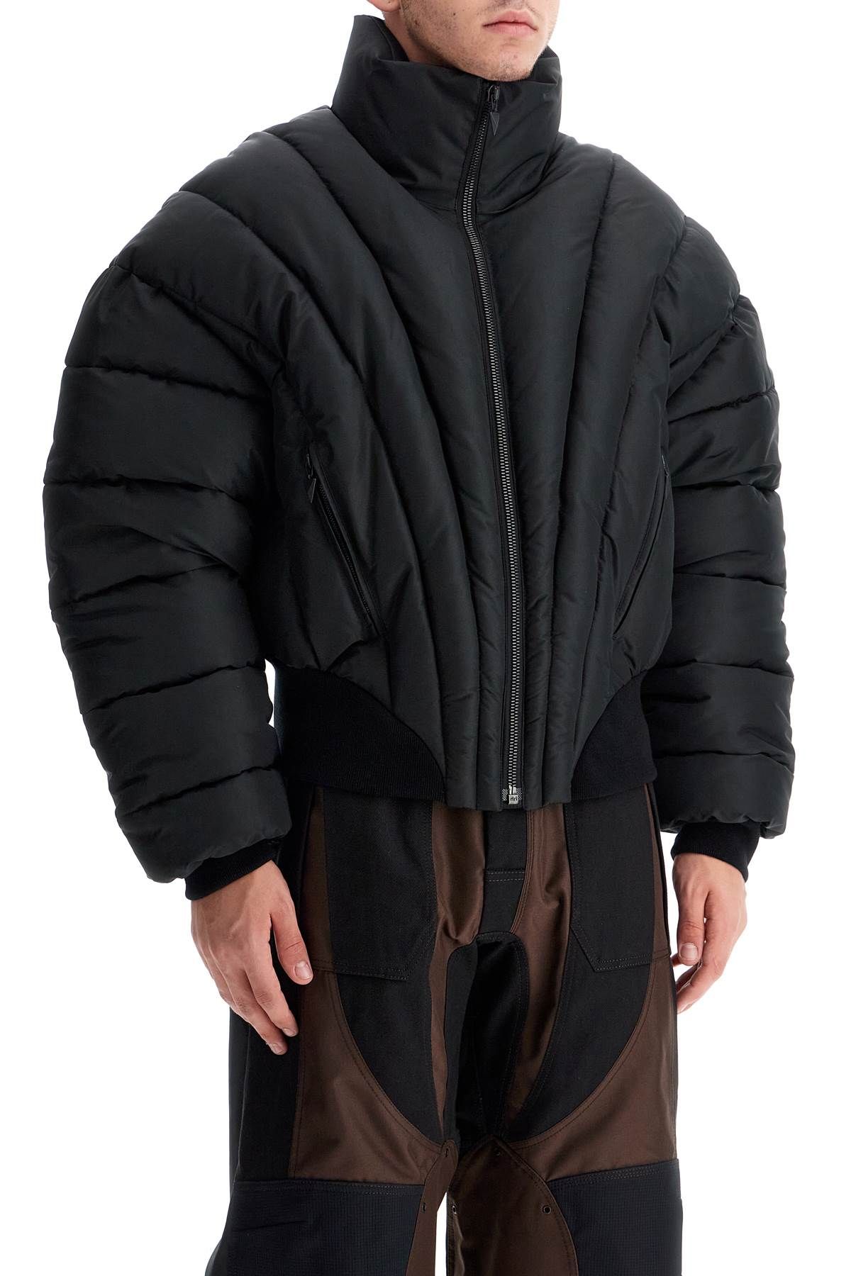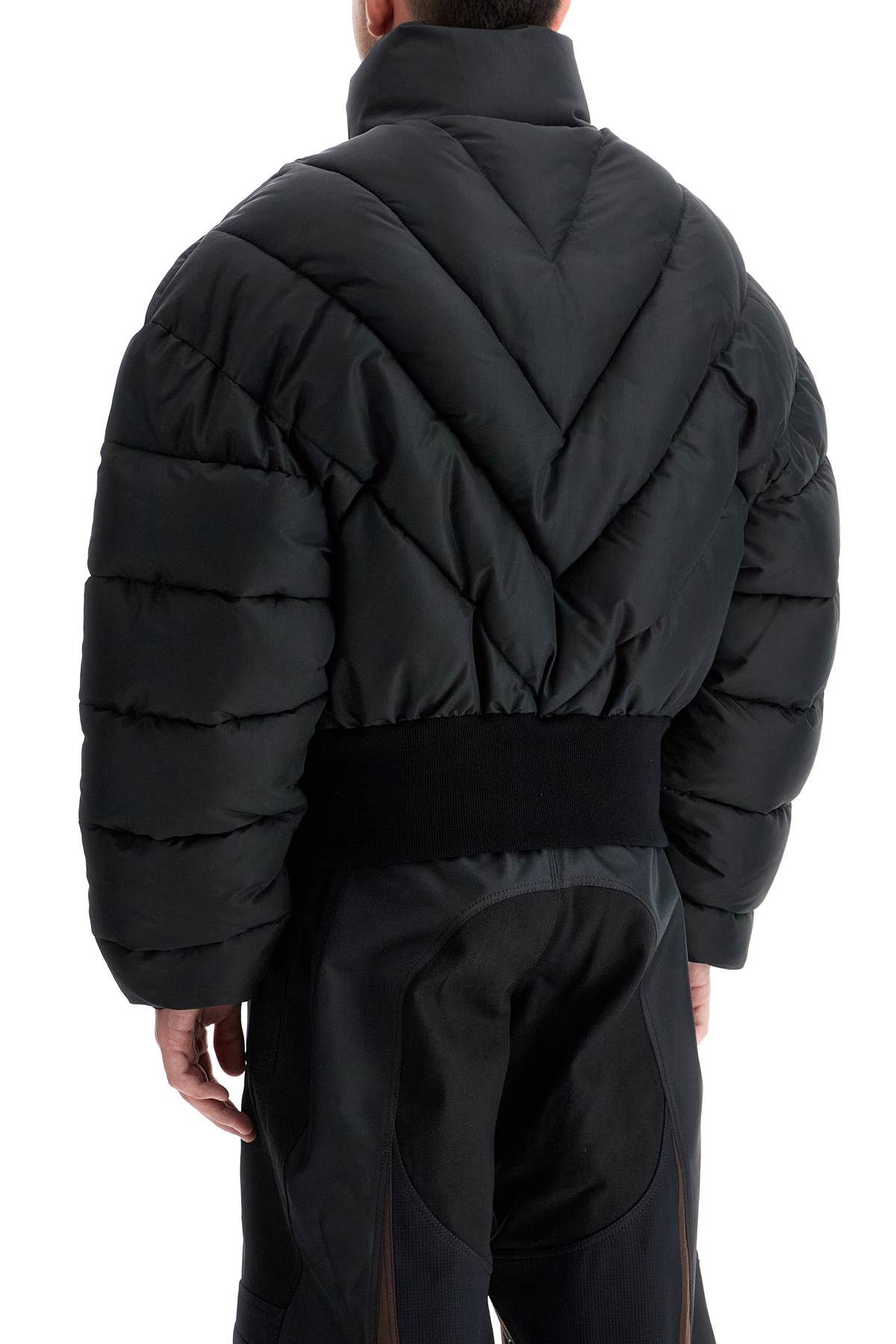 The Mugler cropped bomber is made of nylon with a chevron quilted pattern