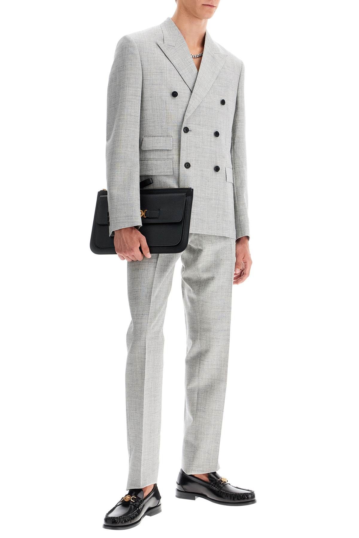 This Versace double-breasted blazer is made of a wool blend fabric, finished with a jacquard tailoring label on the sleeve and partially lined with Barocco Sea print