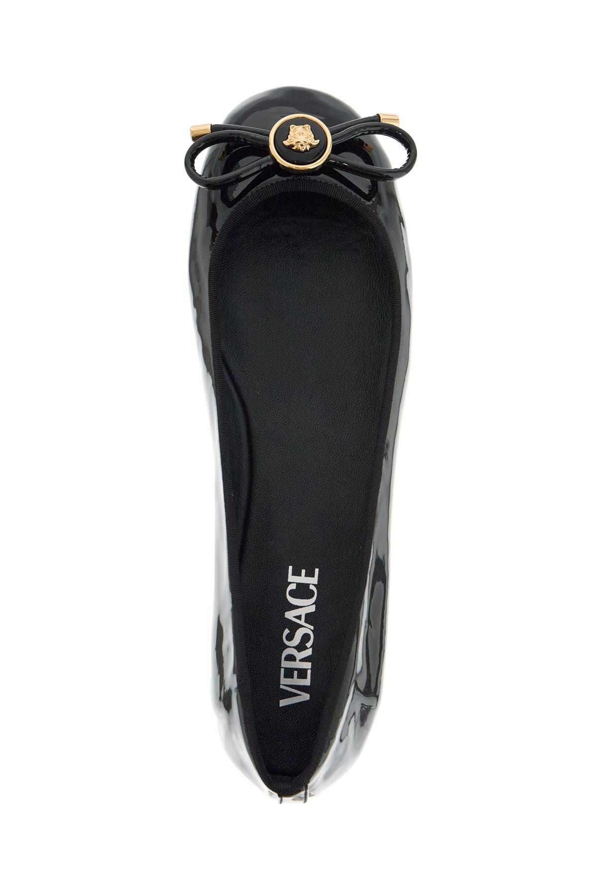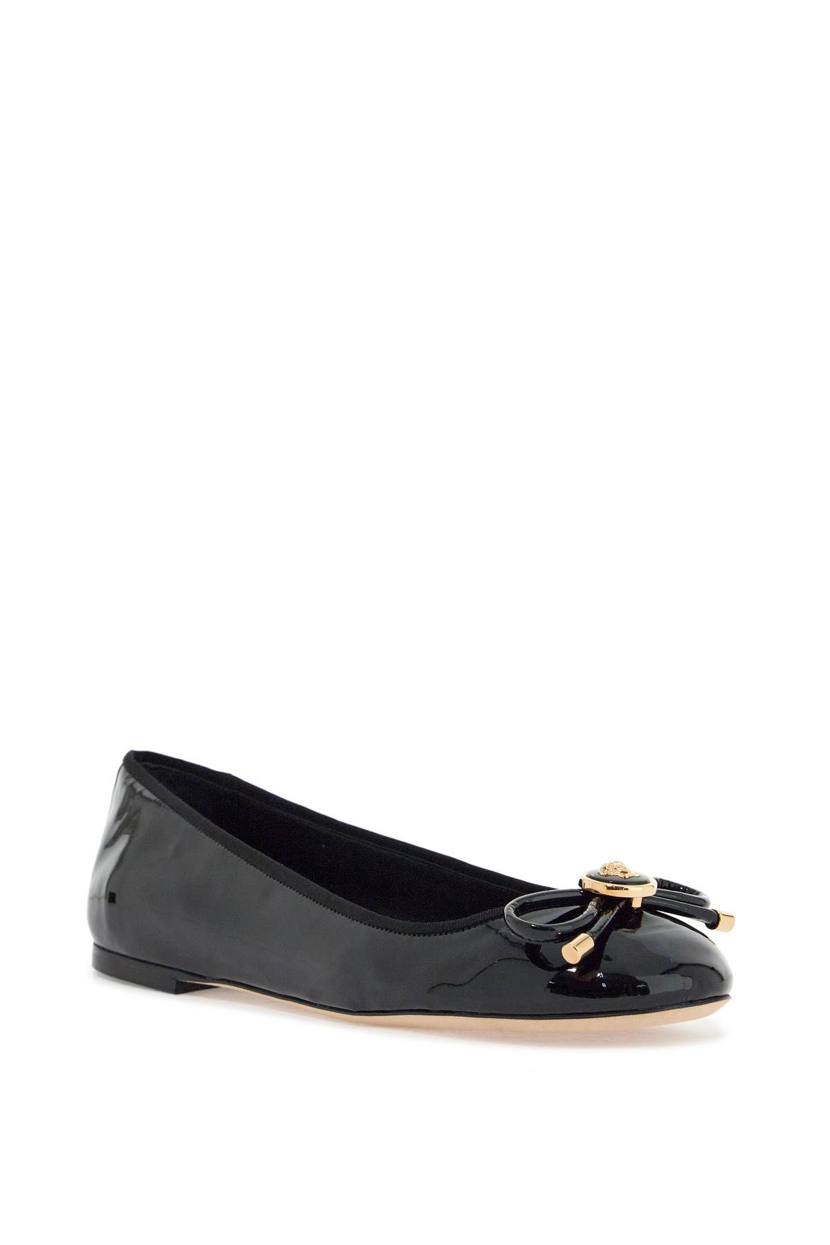 Versace ballerinas made of patent leather and decorated with a bow and Medusa detailing on the toe