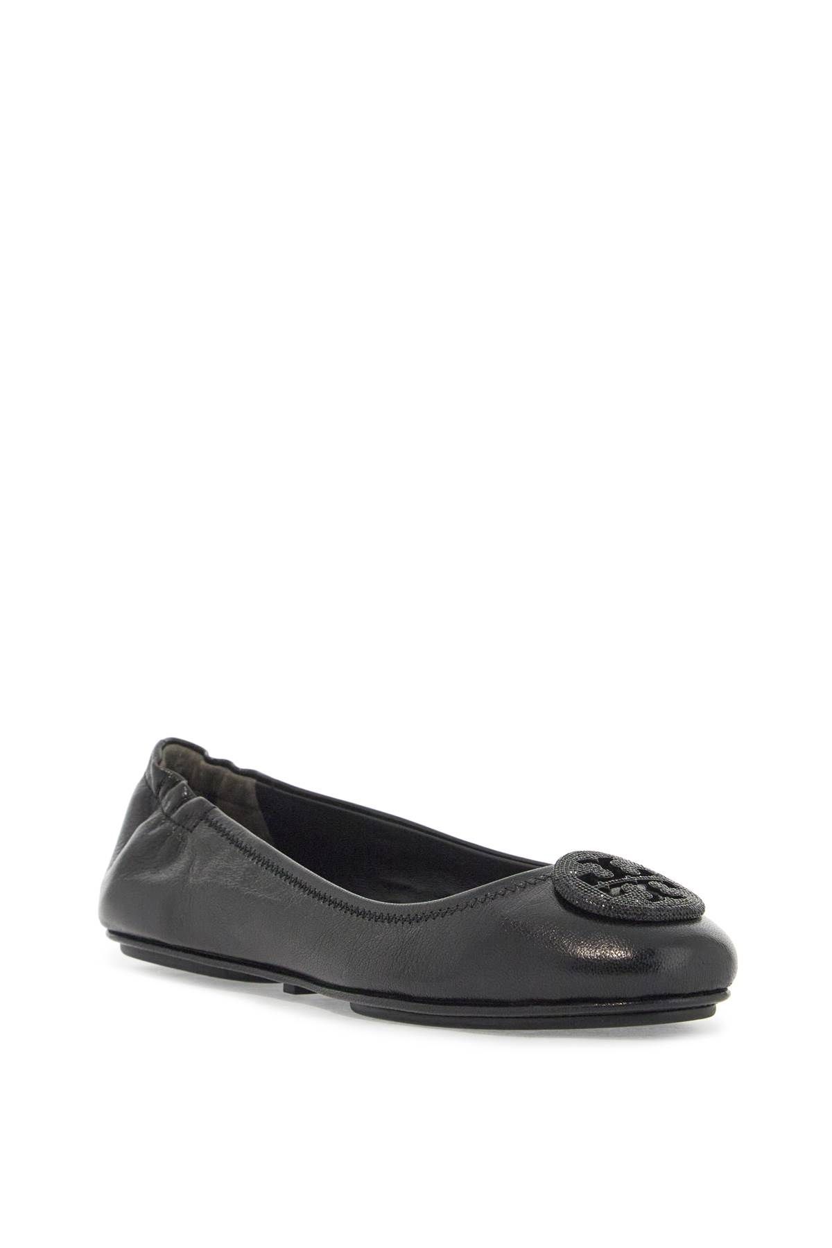 Tory Burch soft nappa ballet flats with the iconic double T logo encrusted with tone-on-tone micro crystals