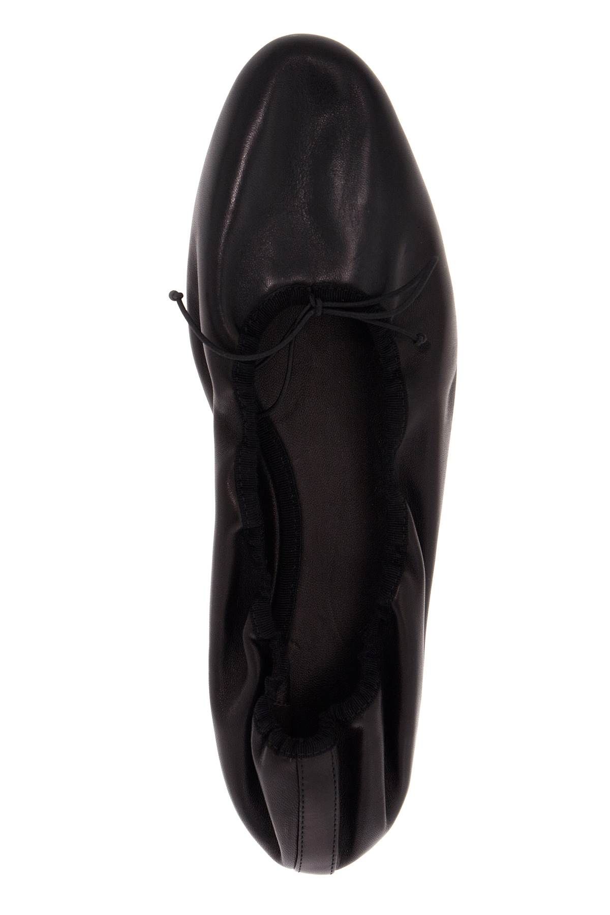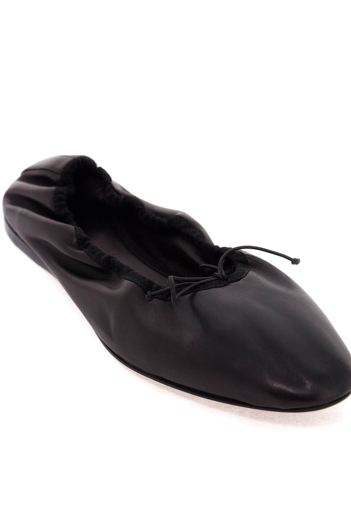 The Row's Awar ballerinas are made of soft leather with a ruched design on the back, finished with a bow and grosgrain trim