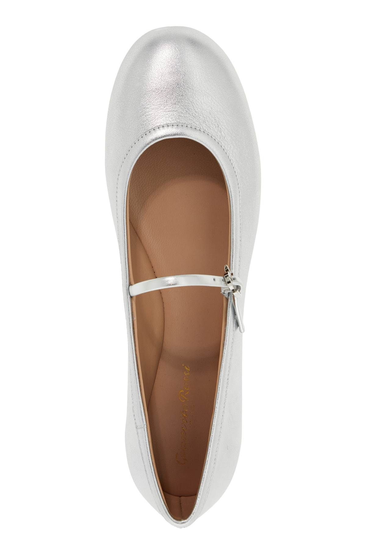 Gianvito Rossi Carla laminated leather ballerinas with Mary Jane design and adjustable strap embellished with iconic gold Ribbon buckle