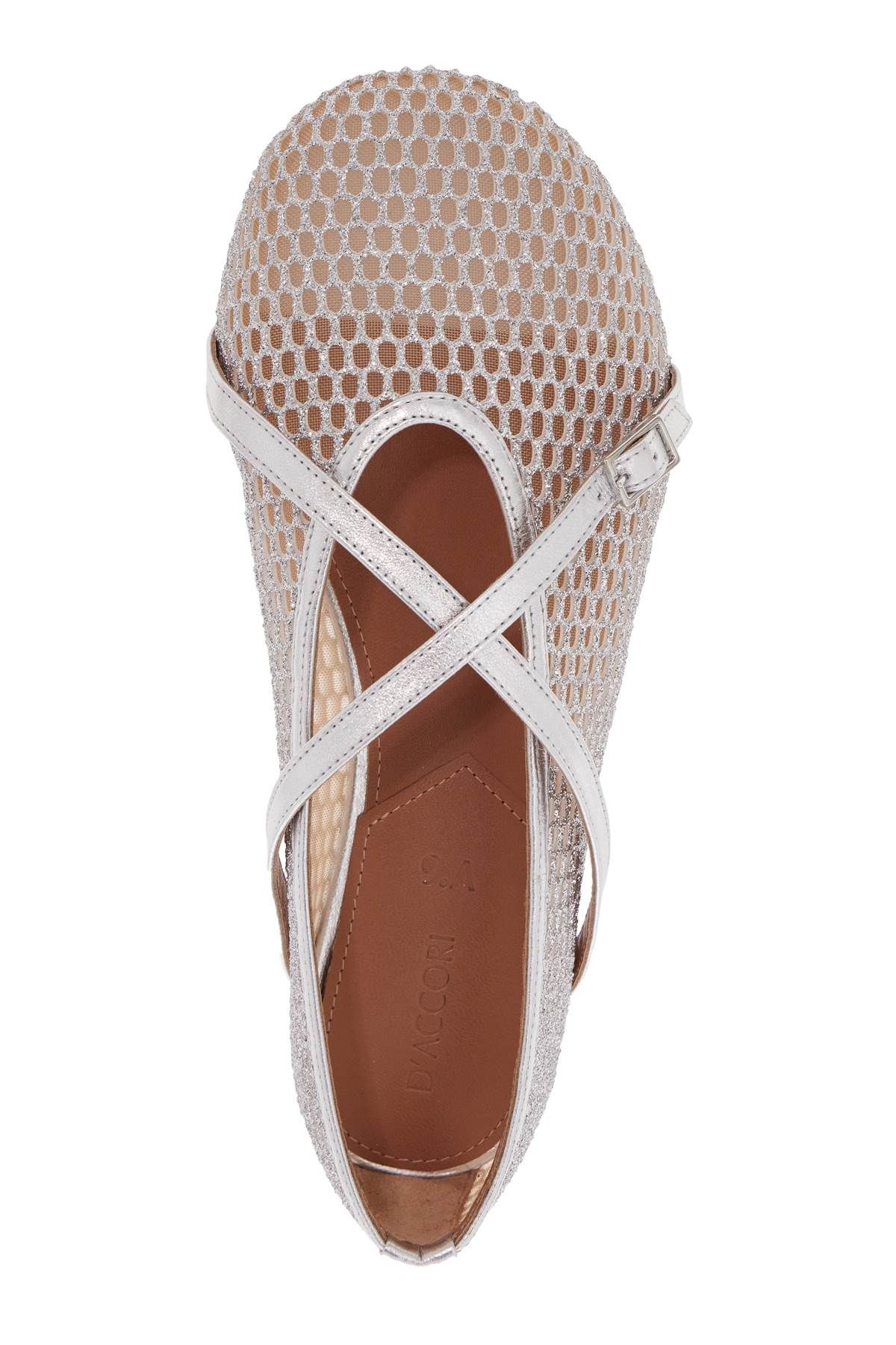The Bambi ballerinas by D'Accori are made of mesh and glittery net, completed with matching laminated leather straps and trim