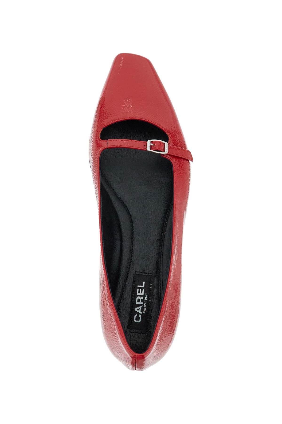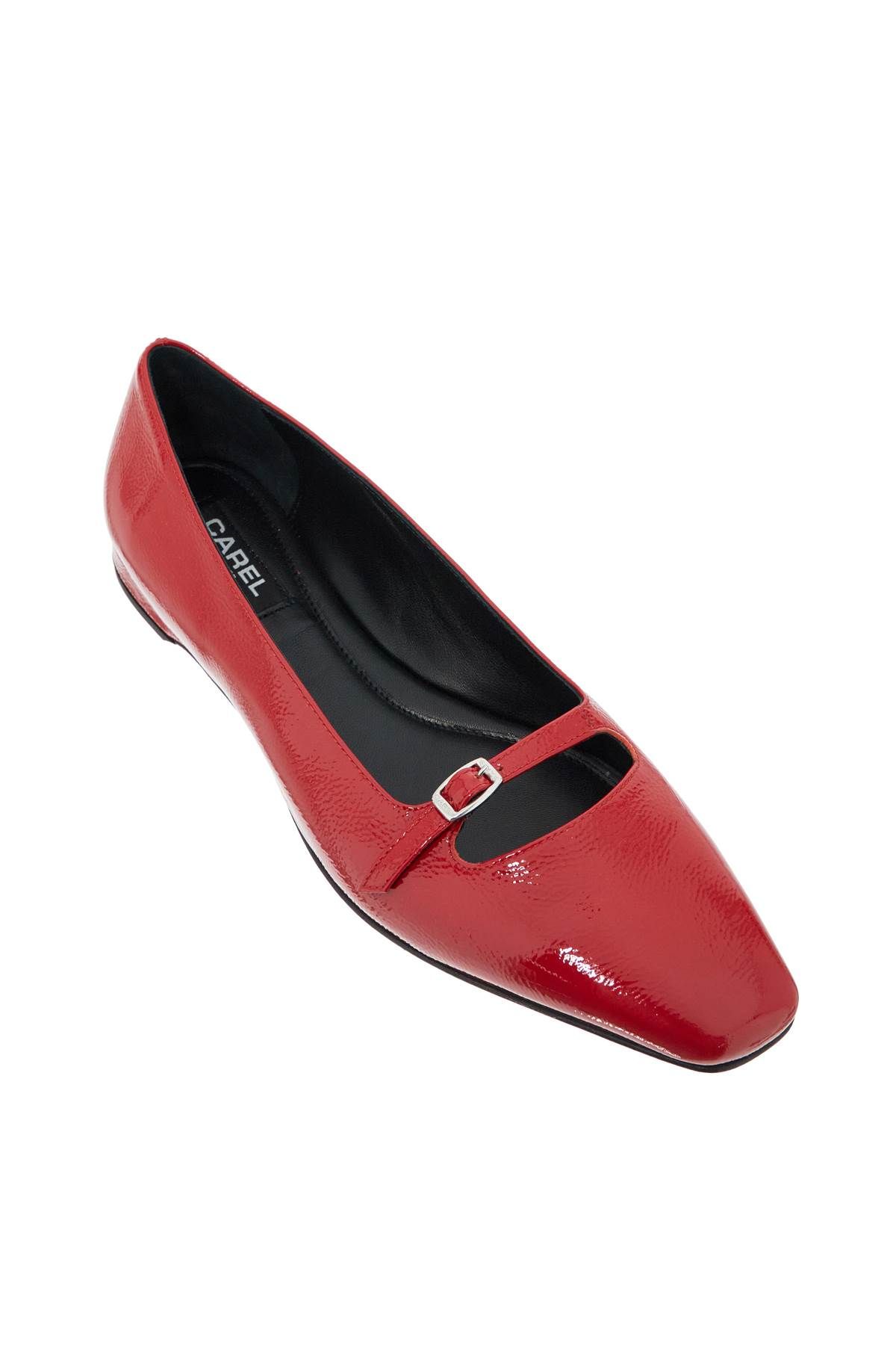 The Emilie ballerinas by Carel are made of naplack leather and feature a tapered design with a square toe and thin adjustable strap