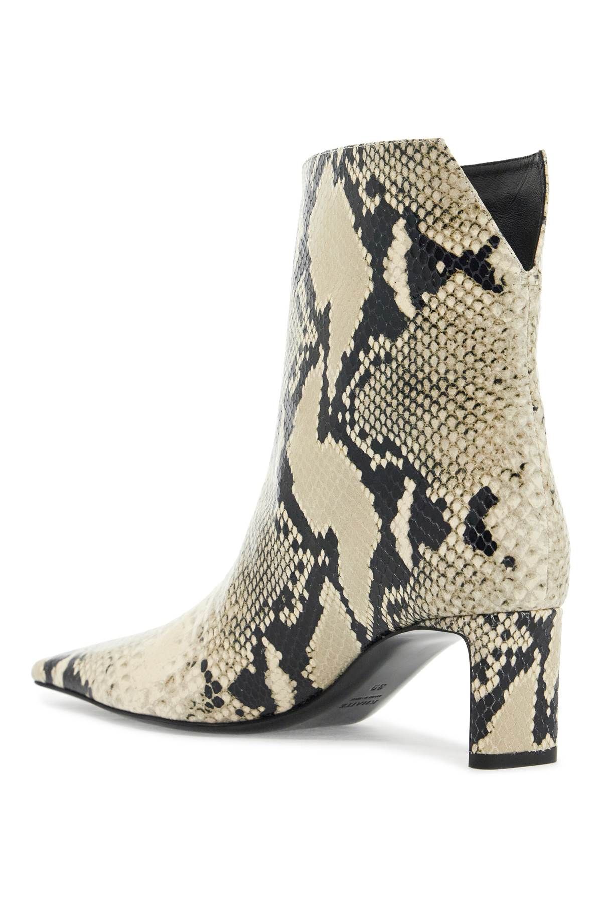 The Ona ankle boots by Khaite are made of python leather with a square toe, V-cut on the back of the shaft and a flat heel. The interior is lined in leather and the sole is made of leather as well.