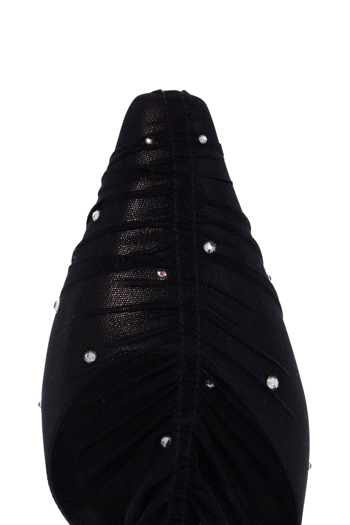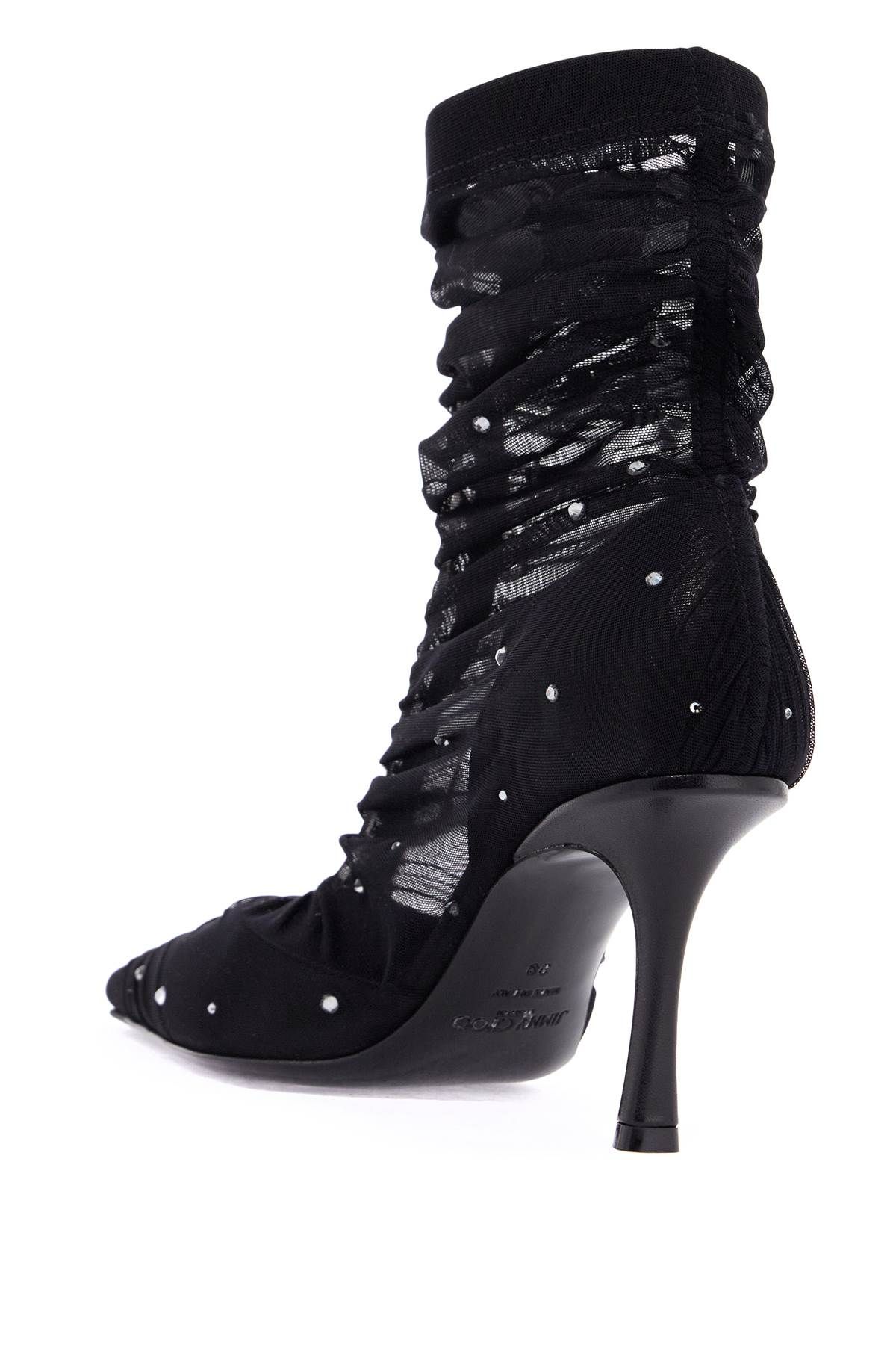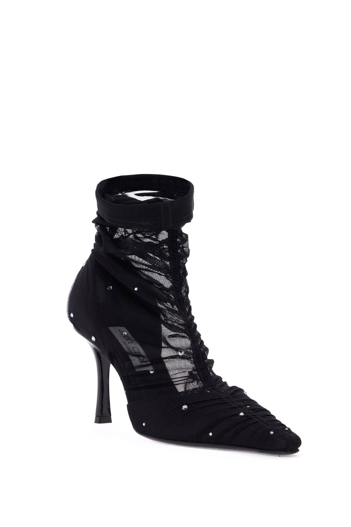 Jimmy Choo's Lotta ankle boots feature a mesh sock upper embellished with small rhinestones and a full leather structure. The design boasts a tapered, slightly squared toe, a leather insole, and a leather sole.