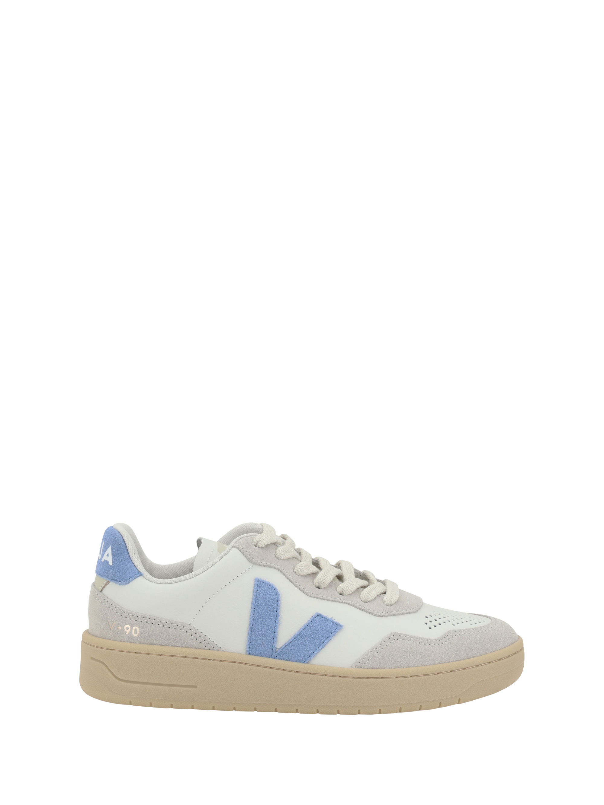 Vejas V90 Organic Leather Sneakers are a pair of minimalist sophisticated style shoes perfect for adding a fresh modern touch to your look They feature a round toe that offers a comfortable and versatile shape The laceup closure ensures an adjustable fit while the V logo patch on the side and contrasting logo on the back add a distinctive and iconic touch to the design Contrasting heel details complete the shoes sleek urban aesthetic