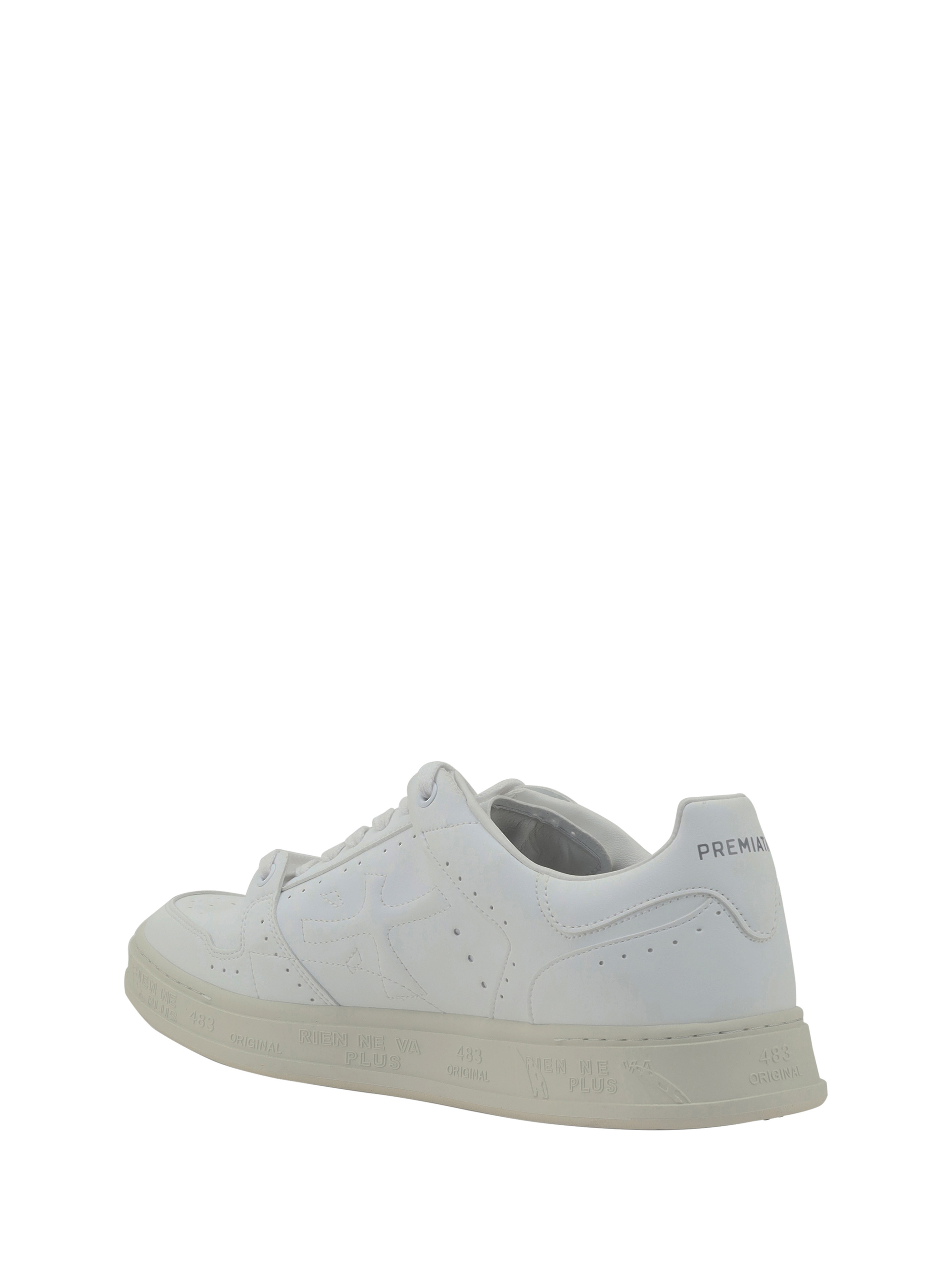 Premiatas leather Sneakers offer a sleek modern design The perforated round toe adds a distinctive detail and good breathability The front laceup closure allows for an adjustable fit while the embossed logo on the side panels and the logoembossed pressstud heel lend a touch of brand recognition The flat rubber sole ensures comfort and stability complemented by the logoed insole which adds an additional style detail