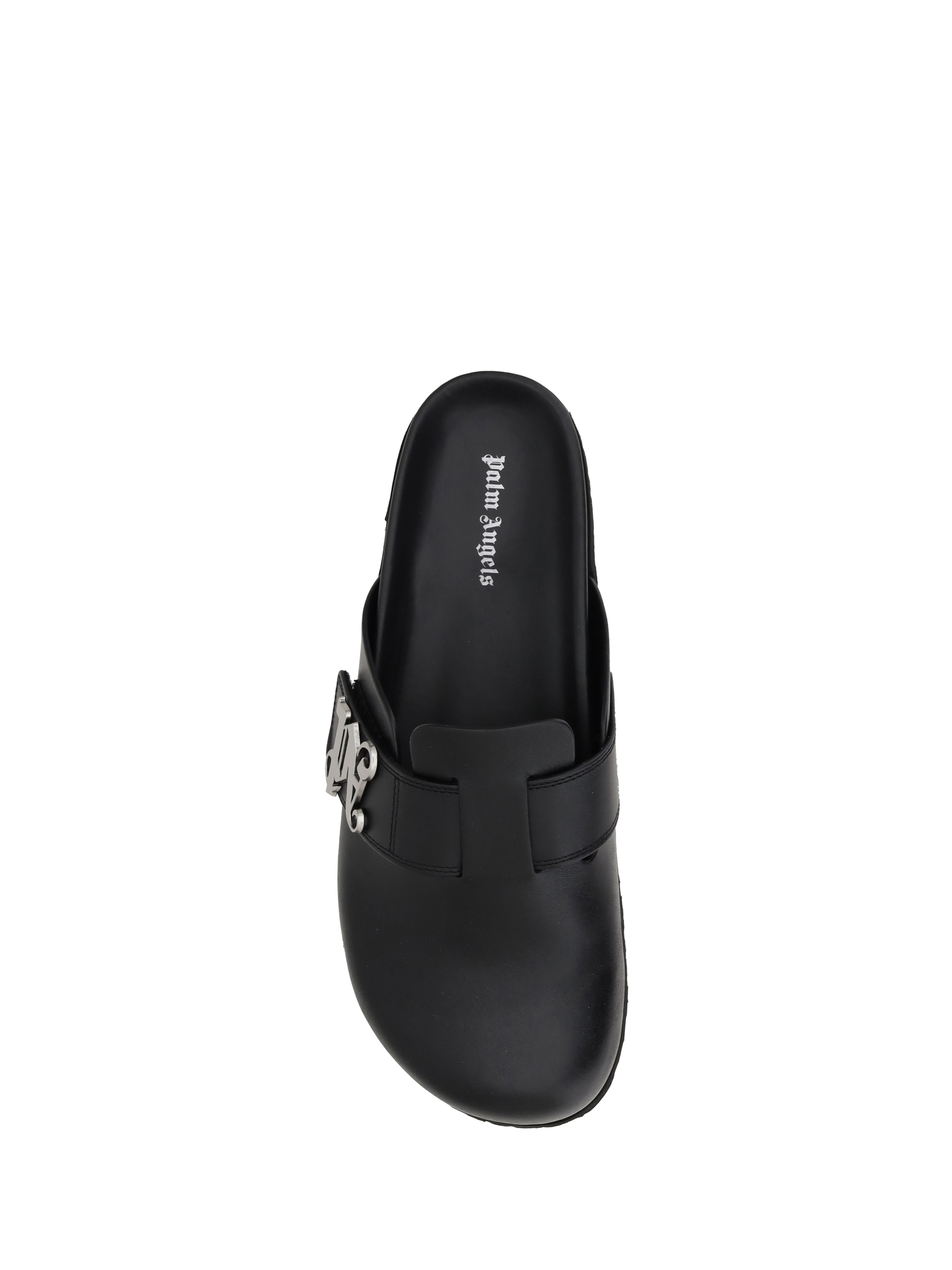 Leather Mules by Palm Angels feature a round toe and slipon design for an easy comfortable fit The wide strap is embellished with a threedimensional plaque with the brands iconic applique logo adding a distinctive and modern touch The flat sole offers comfort and stability while the branded insole completes the design giving an additional exclusive detail
