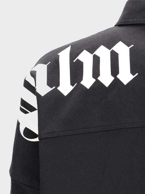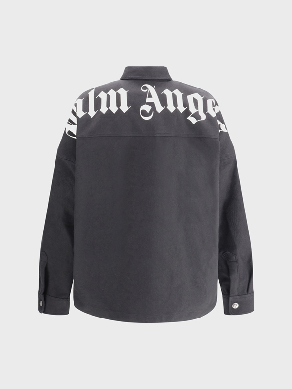 Cotton Shirt by Palm Angels stands out for its modern and practical design The brands signature classic collar and embossed snapbutton closure add a distinctive and recognizable touch to the garment The flap welt pocket on the front panel and buttonadjustable cuffs offer functionality and comfort The oversized fit lends a relaxed contemporary look