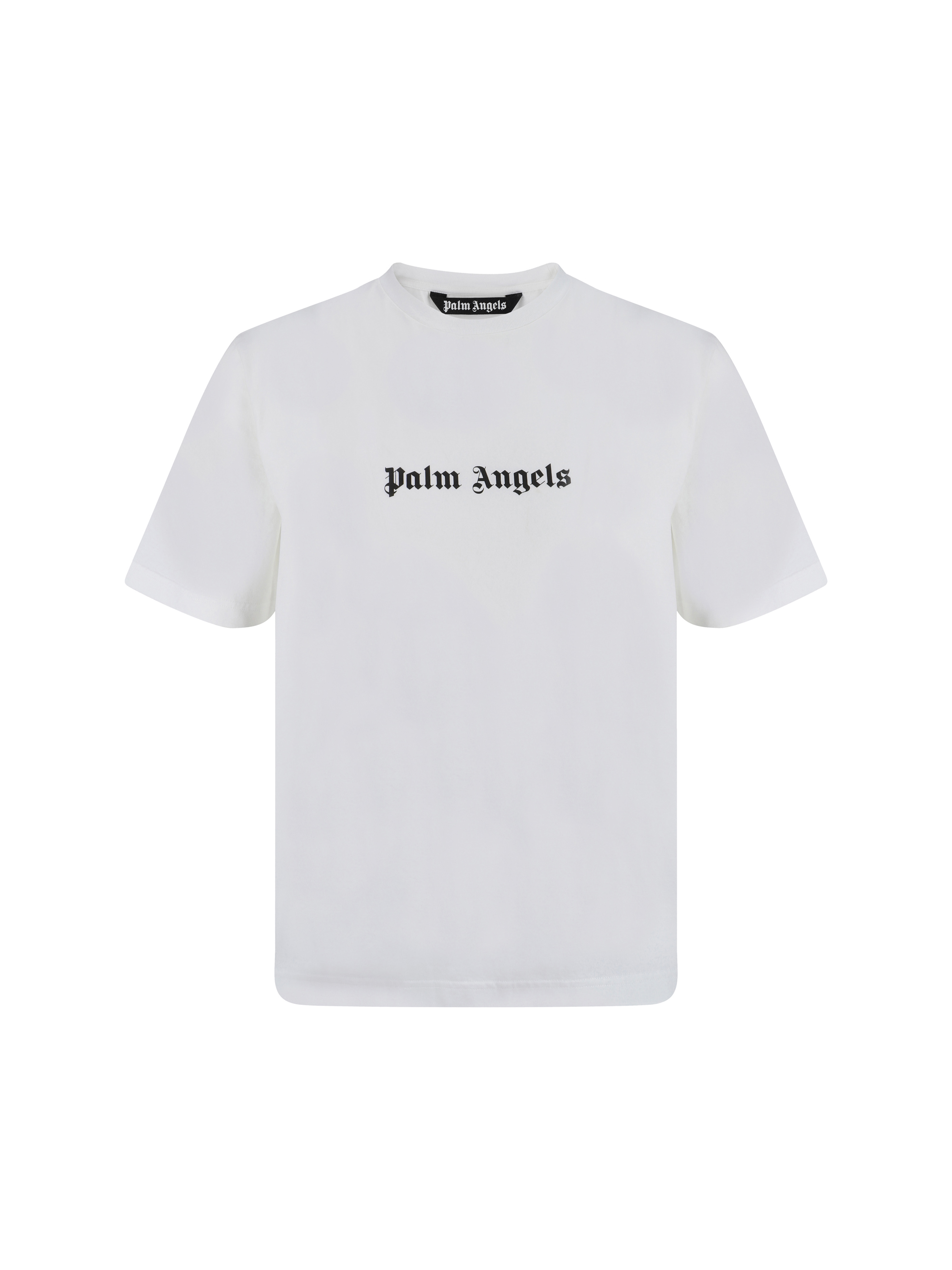 Cotton TShirt by Palm Angels ribbed crew neck contrasting iconic brand monogram on front monochrome pattern regular fit