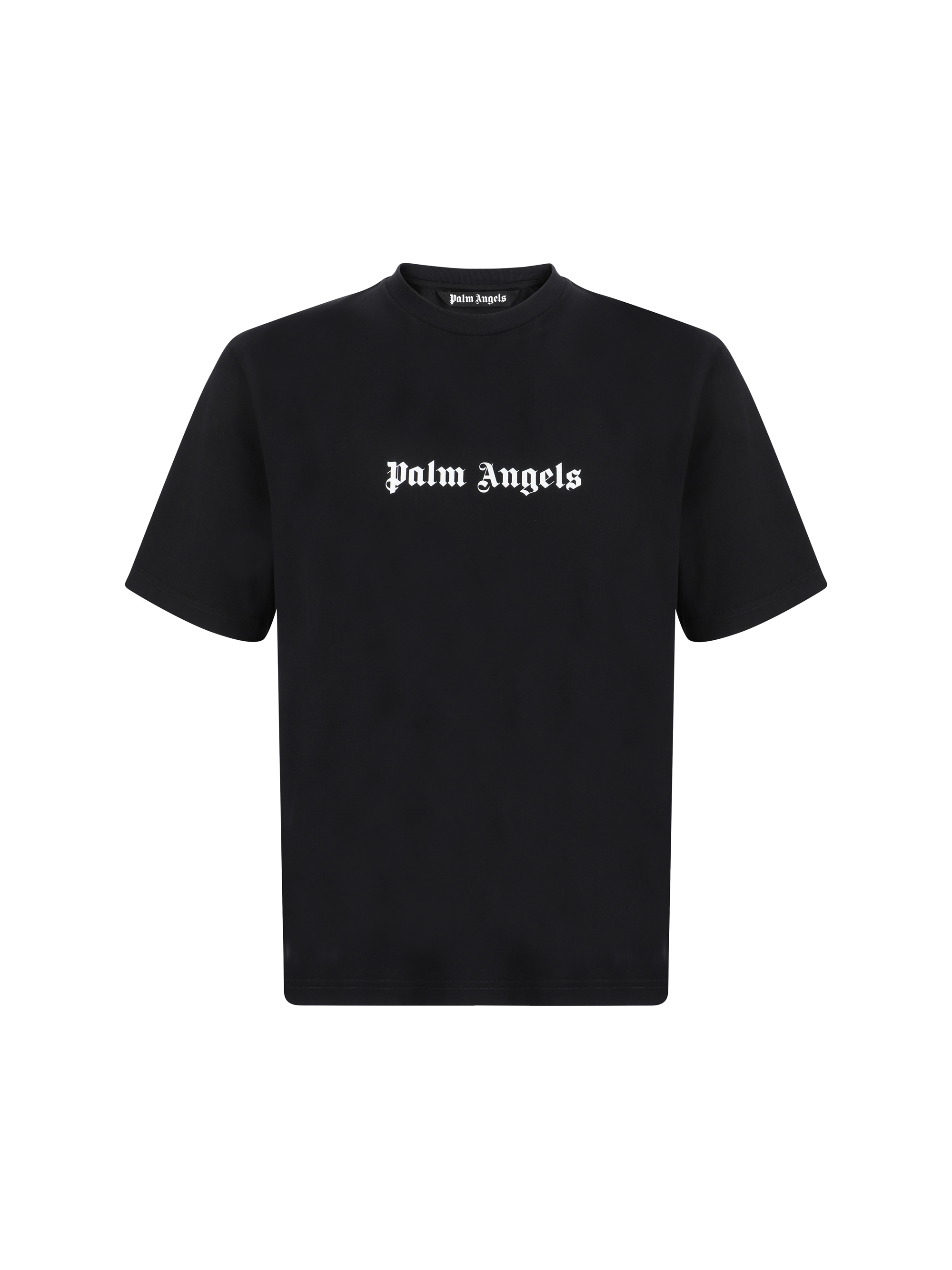 Cotton TShirt by Palm Angels ribbed crew neck contrasting iconic brand monogram on front monochrome pattern regular fit