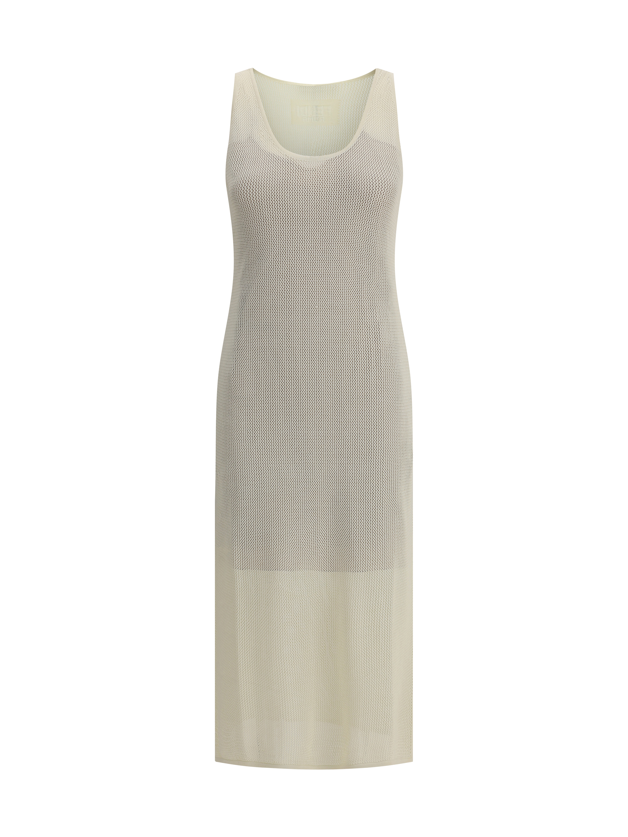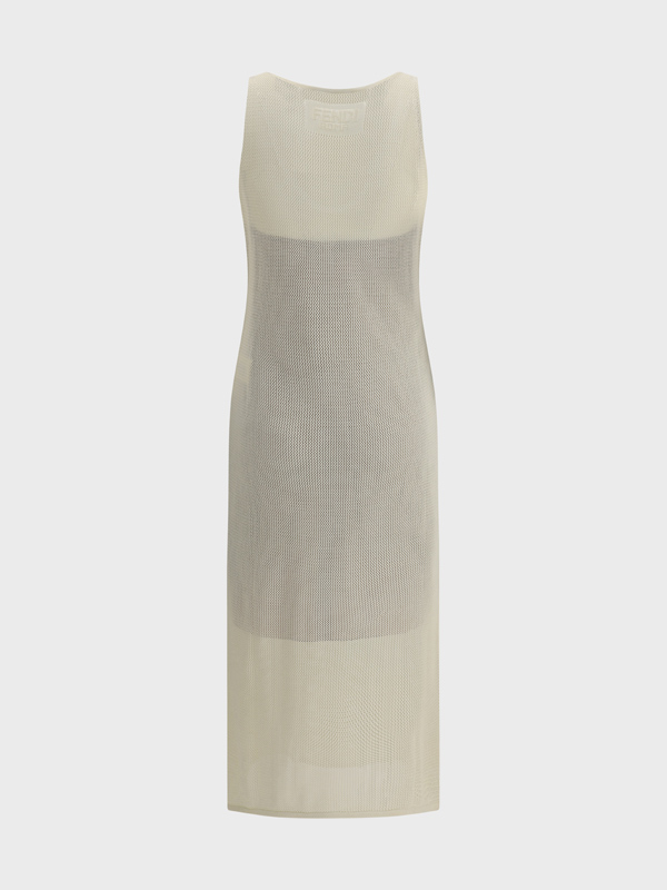 Fendis long Dress is an elegant and sophisticated garment It has a neckline on the front that lends a feminine touch while the perforated weave adds lightness and sophistication The iconic monogram detail on the back panel lends a distinctive and modern touch The dress comes with a matching opaque slip with thin straps that completes the look with elegance and discretion
